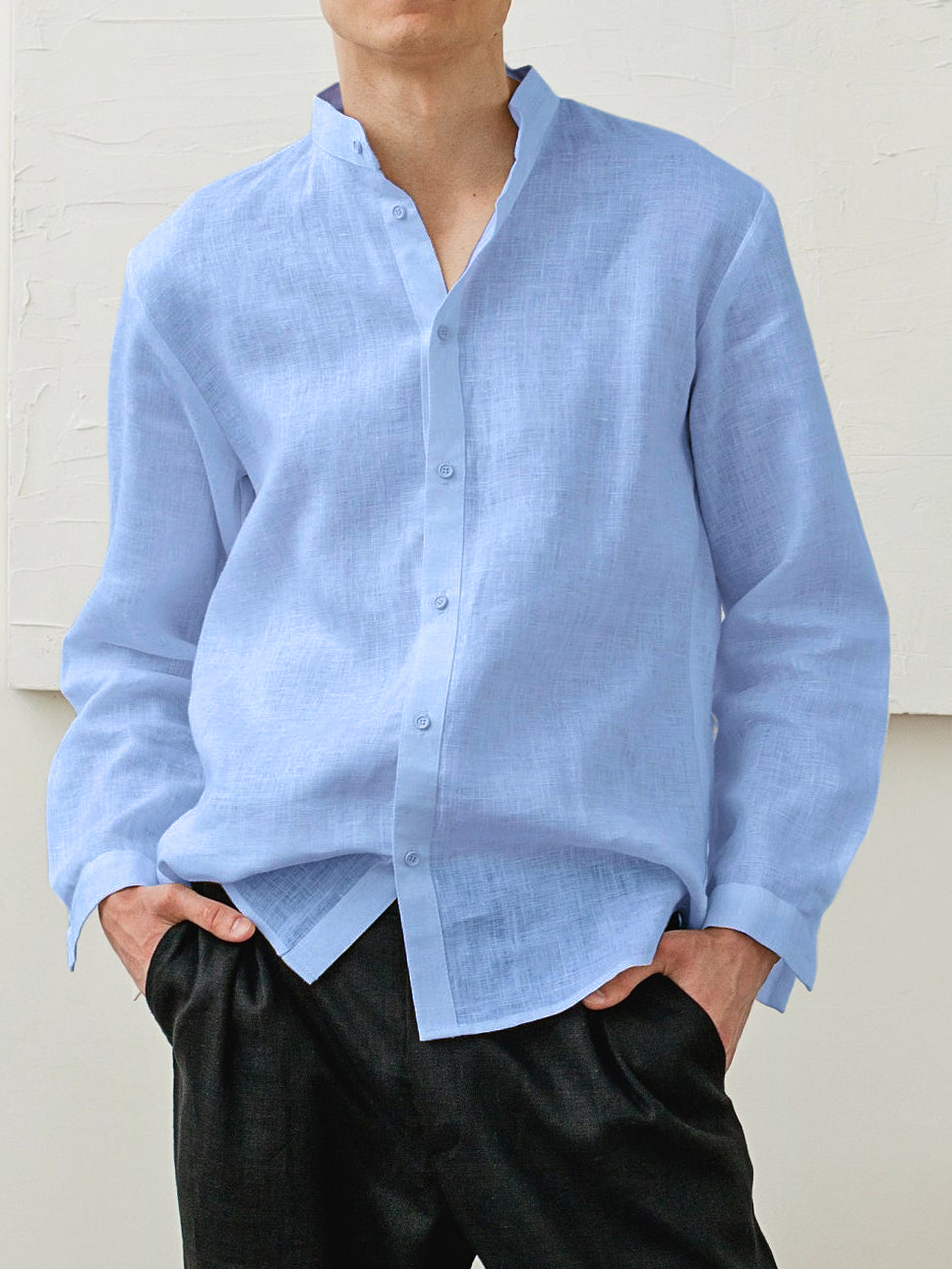 Men's Cotton And Linen Classic Casual Stand-up Collar Long-sleeved Shirt