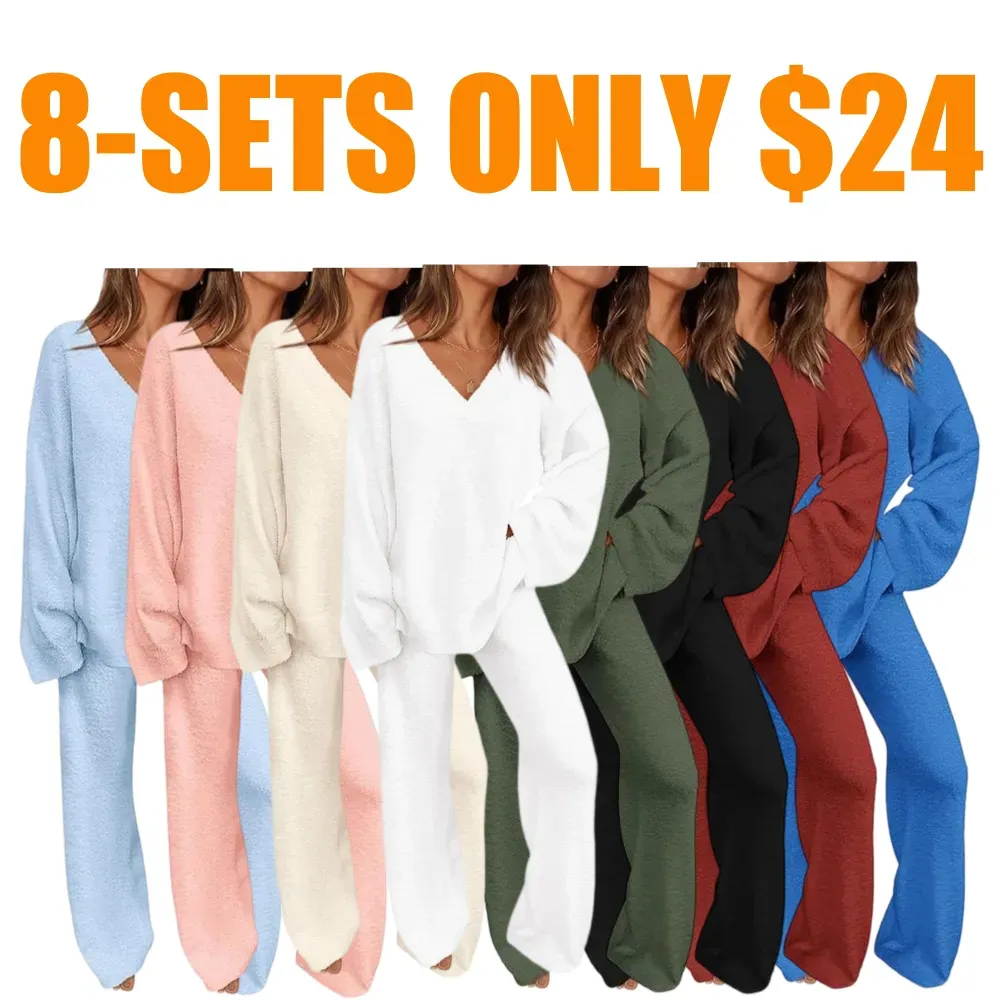 Elegant Casual V-Neck Long Sleeve Basic Two-Piece Outfit Set