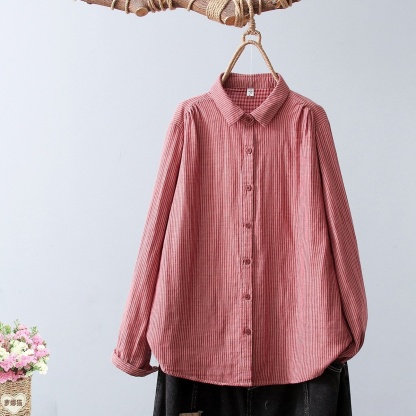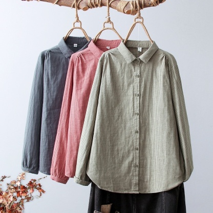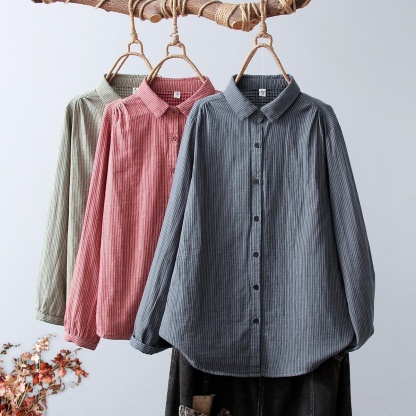 2025 New Women's Linen Cotton Casual Loose Stripe Shirt-Buy 3 Get Free Shipping