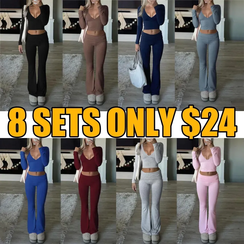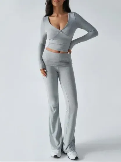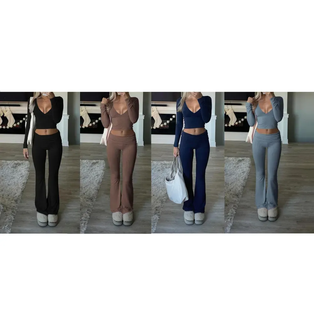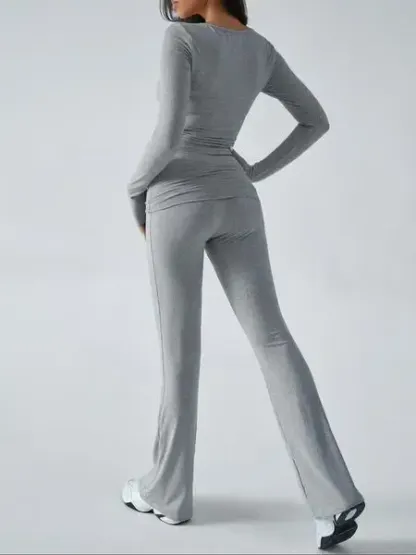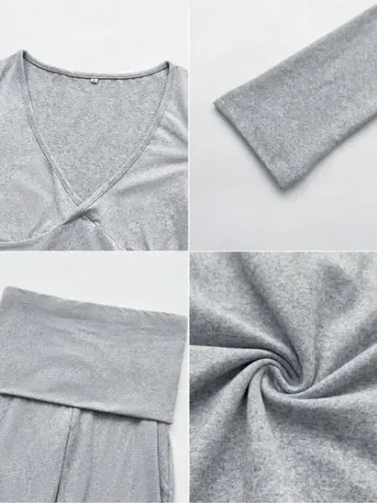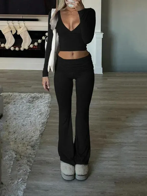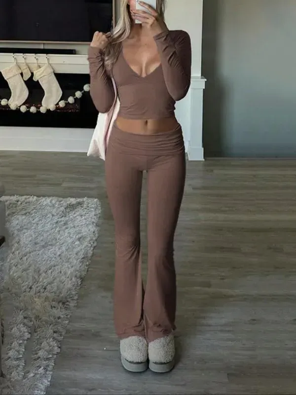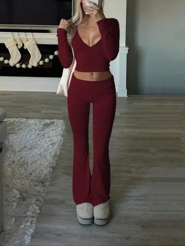 Elegant Casual V-Neck Long Sleeve Basic Two-Piece Outfit Set