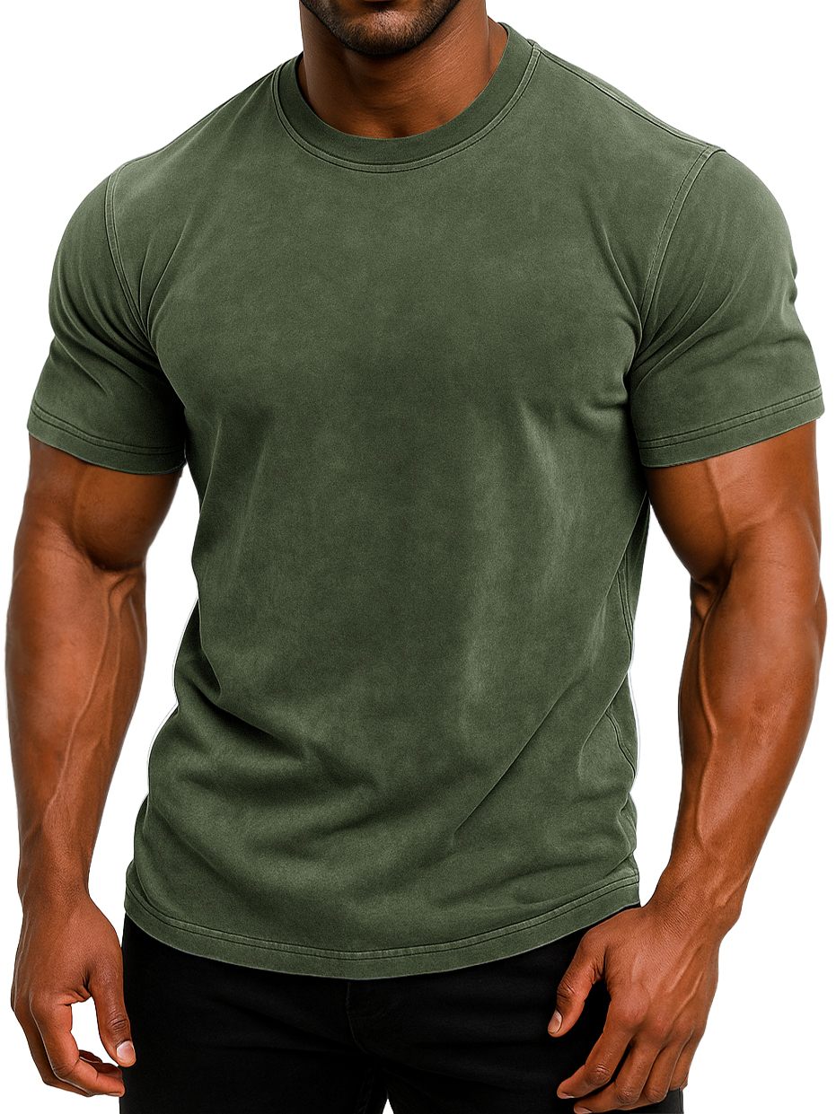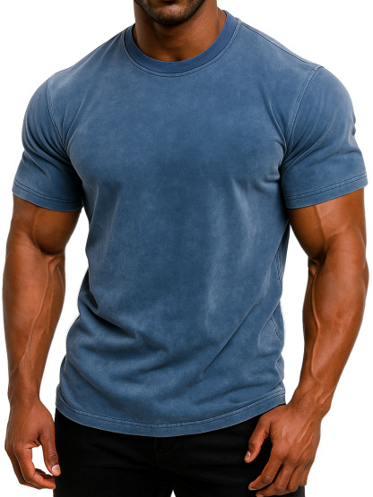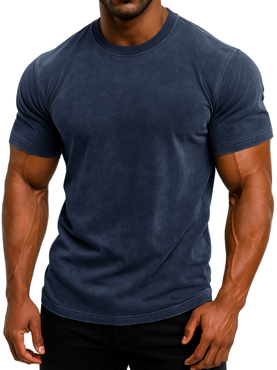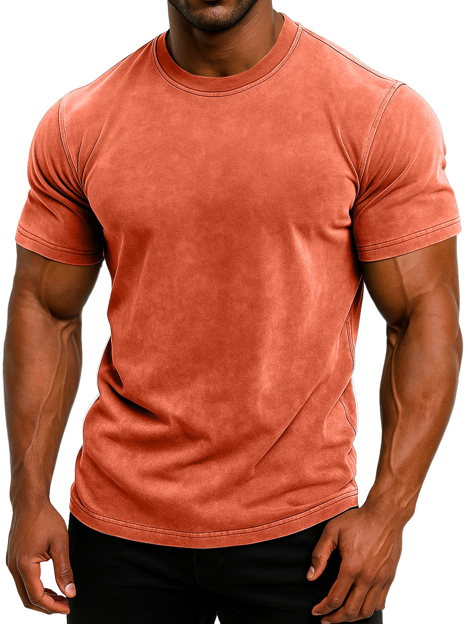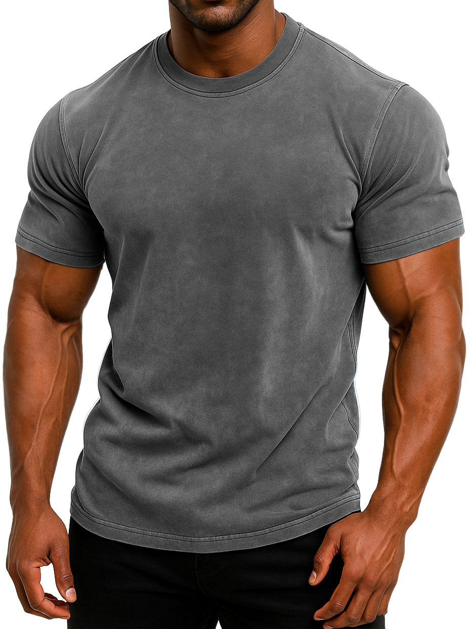 Men's 100% Cotton Retro Washed And Distressed Daily Slim Fit Short-sleeved T-shirt
