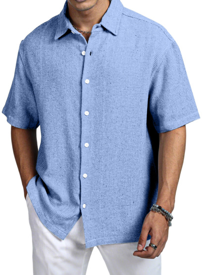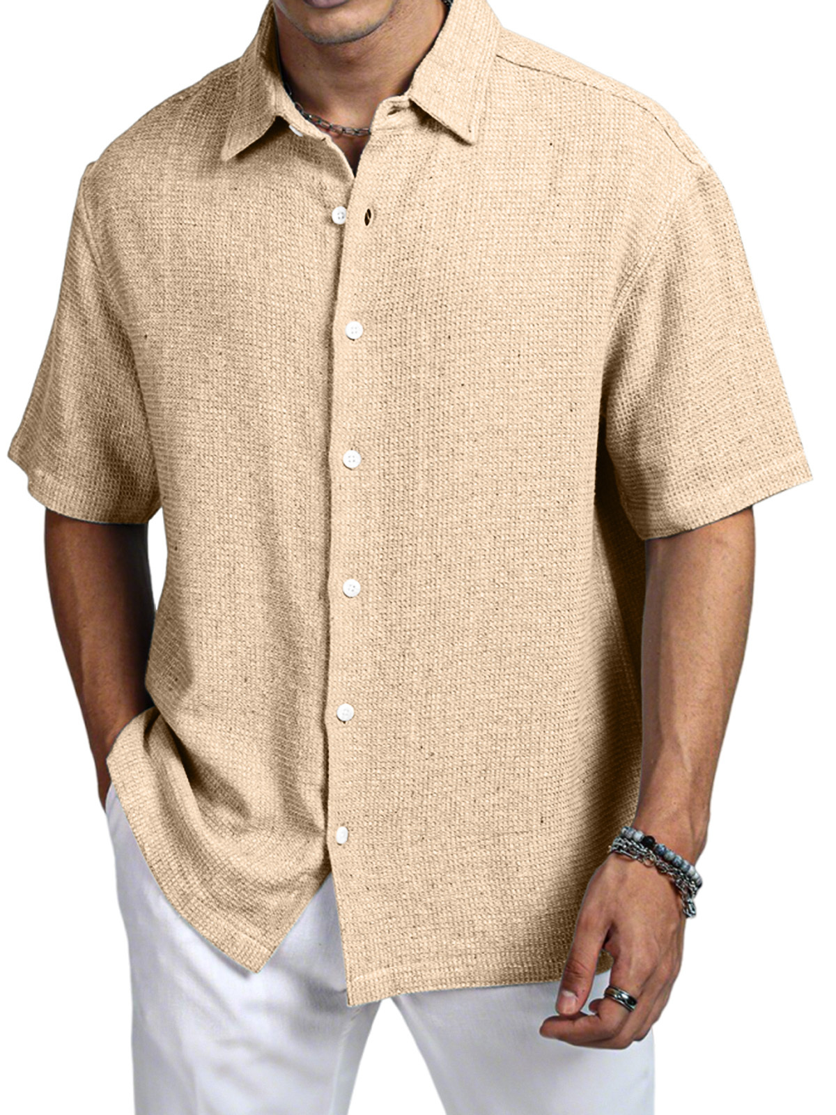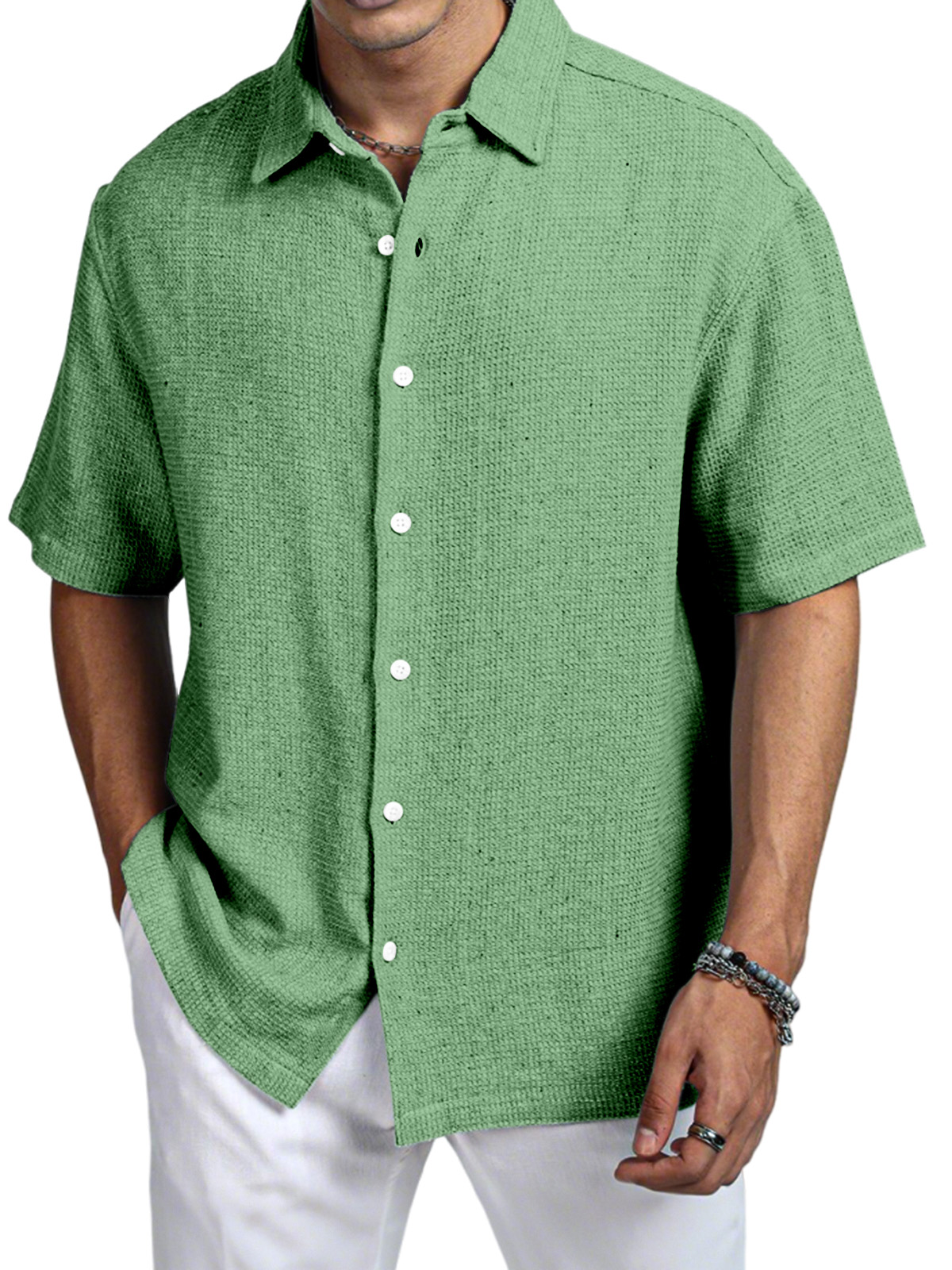 Men's Casual Daily Solid Color Texture Short-sleeved Shirt