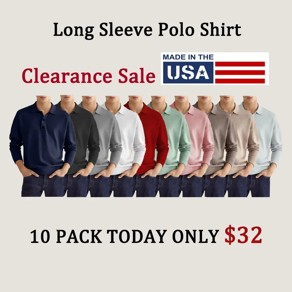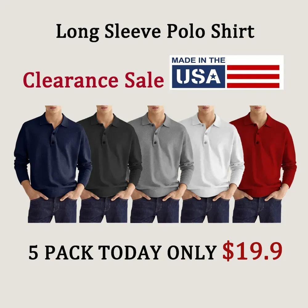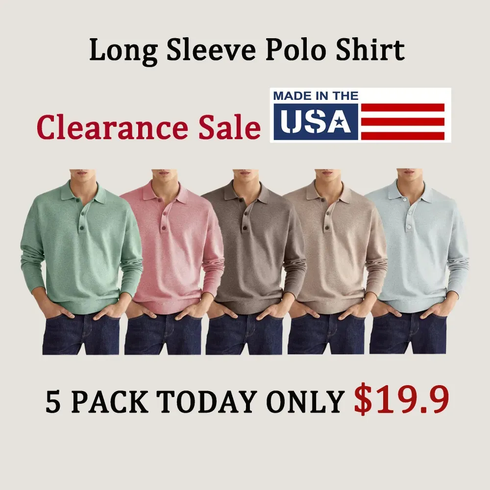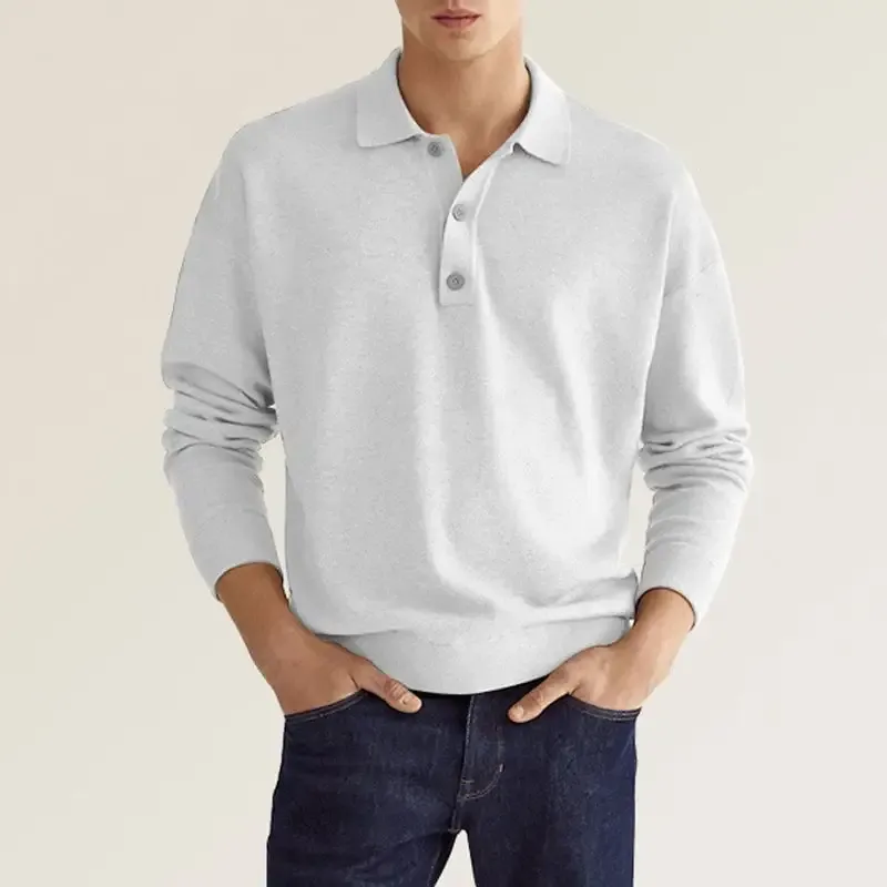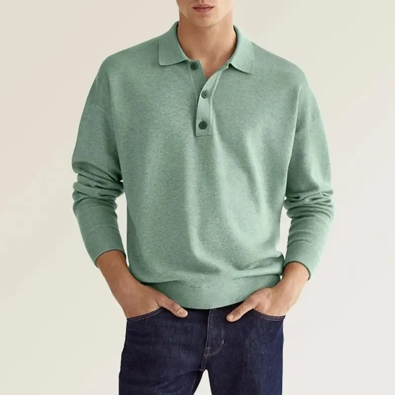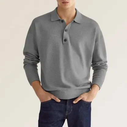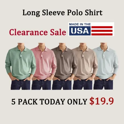 1* Men's Casual Loose Lapel Long Sleeve Polo Shirt