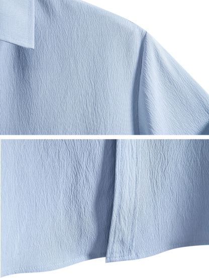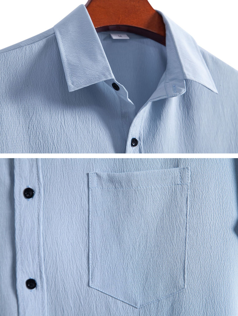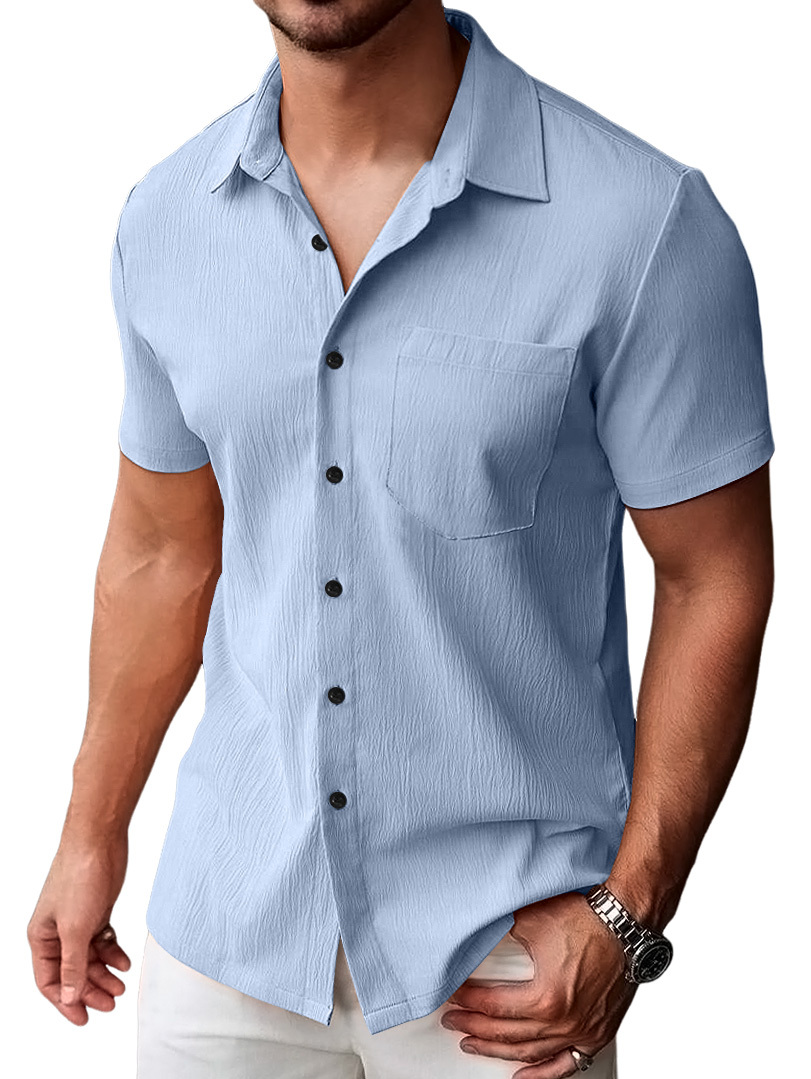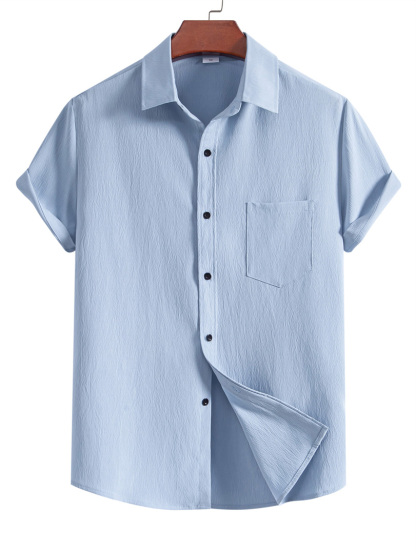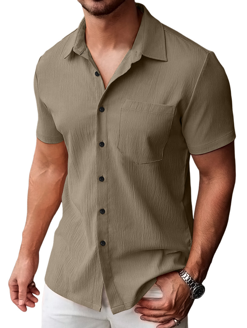 Men's Casual Pleated Solid Pocket Short Sleeve Shirt