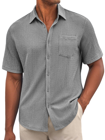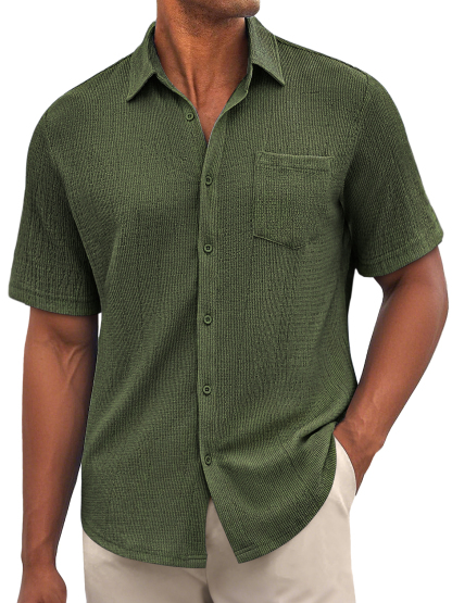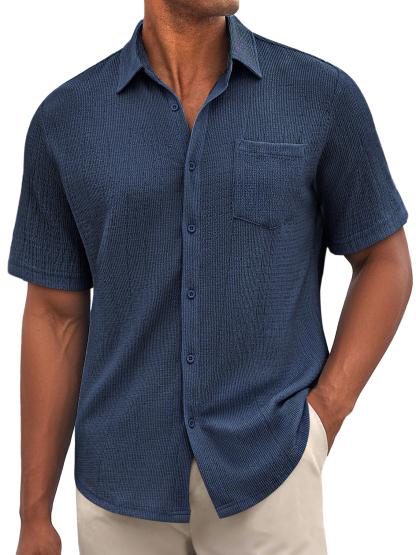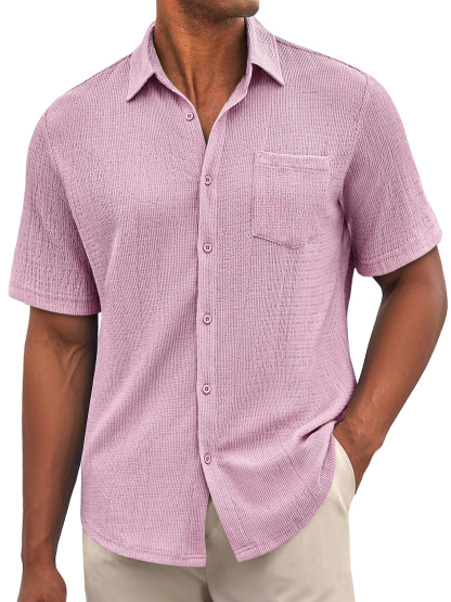 Men's Daily Bubble Wrinkle Casual Pocket Solid Color Short Sleeve Shirt