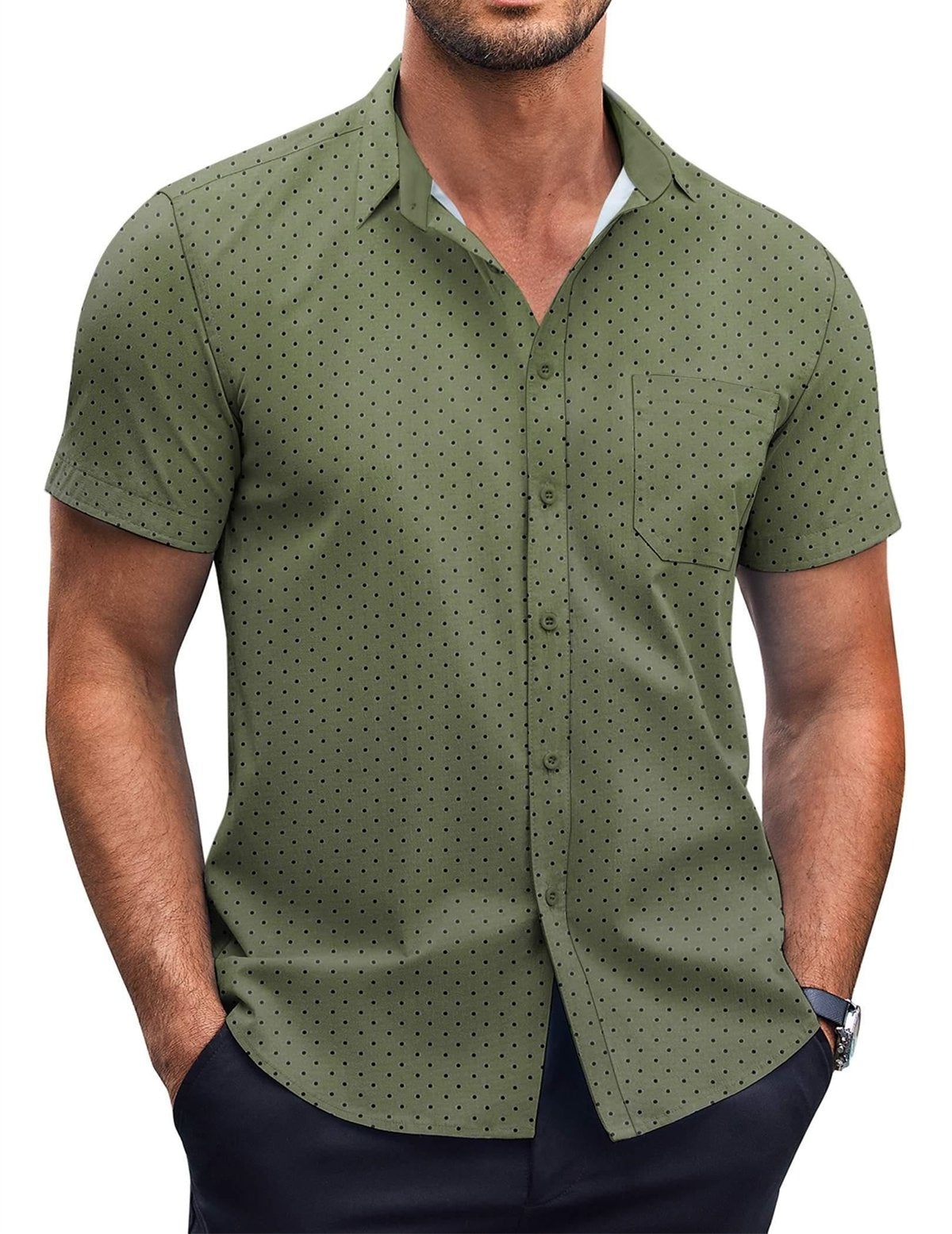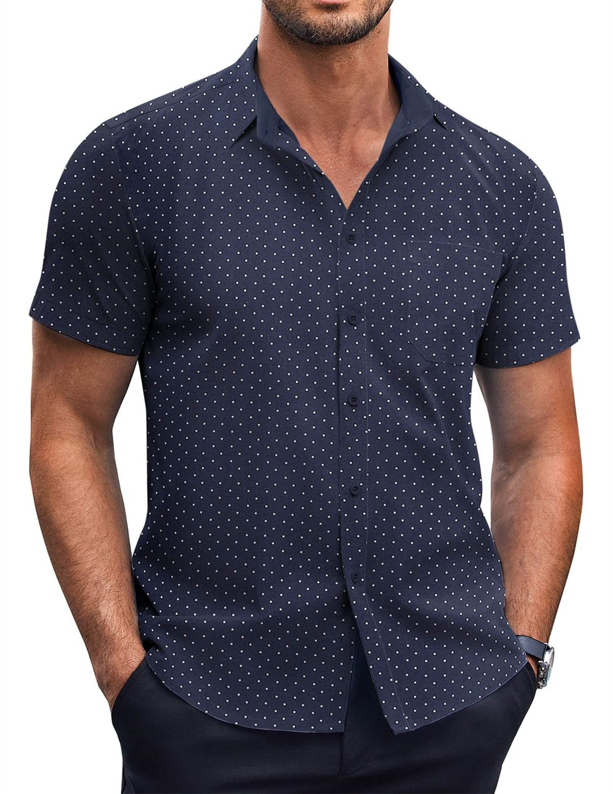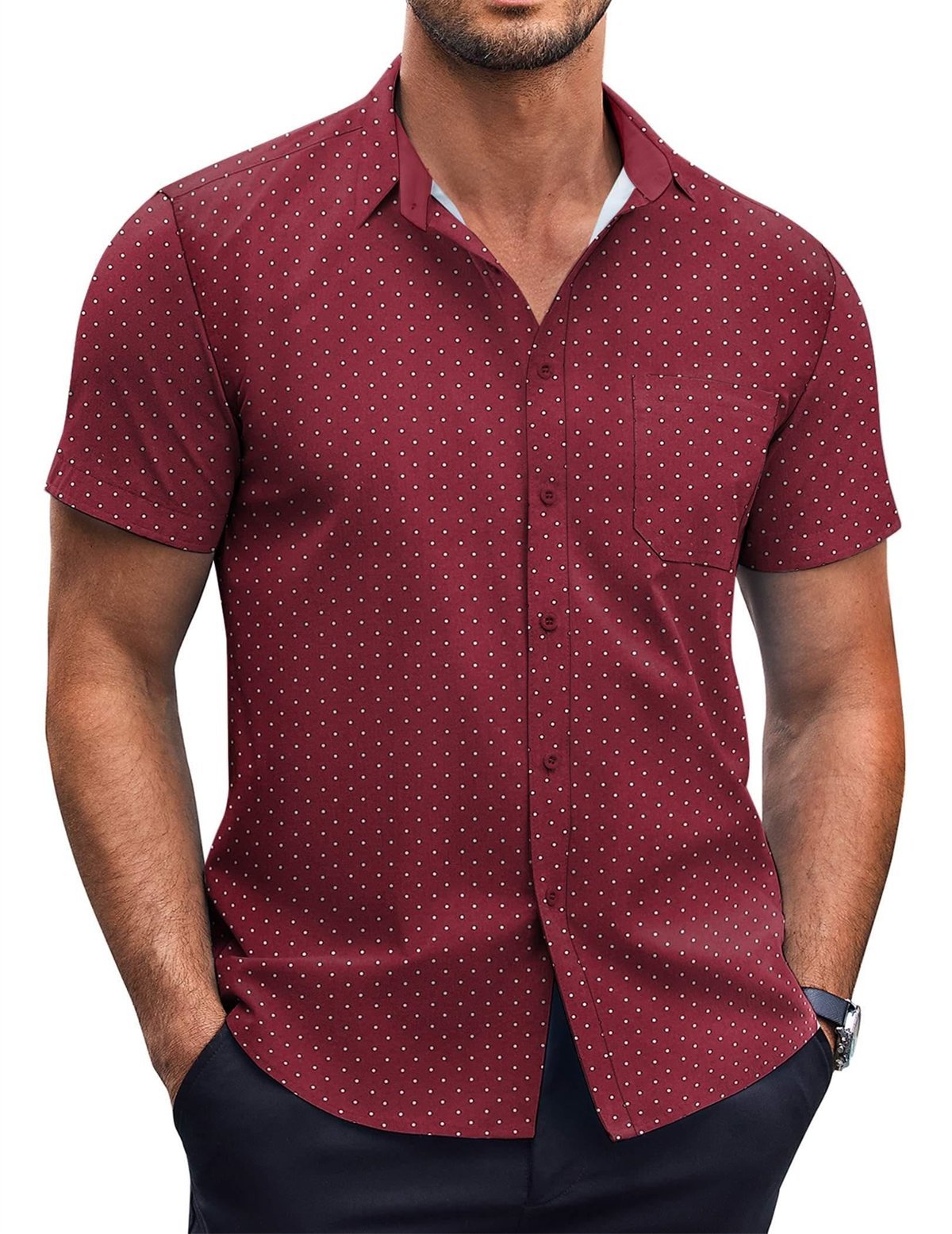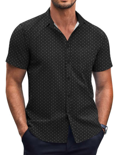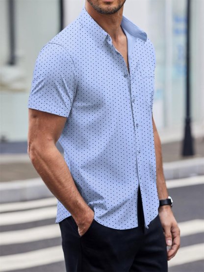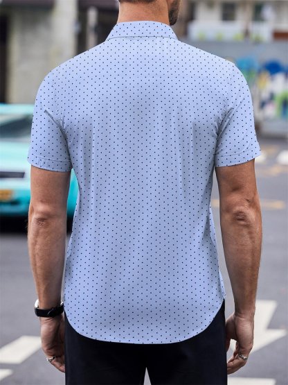 Men's Elegant Polka Dot Classic Print Wrinkle Resistant Short Sleeve Shirt