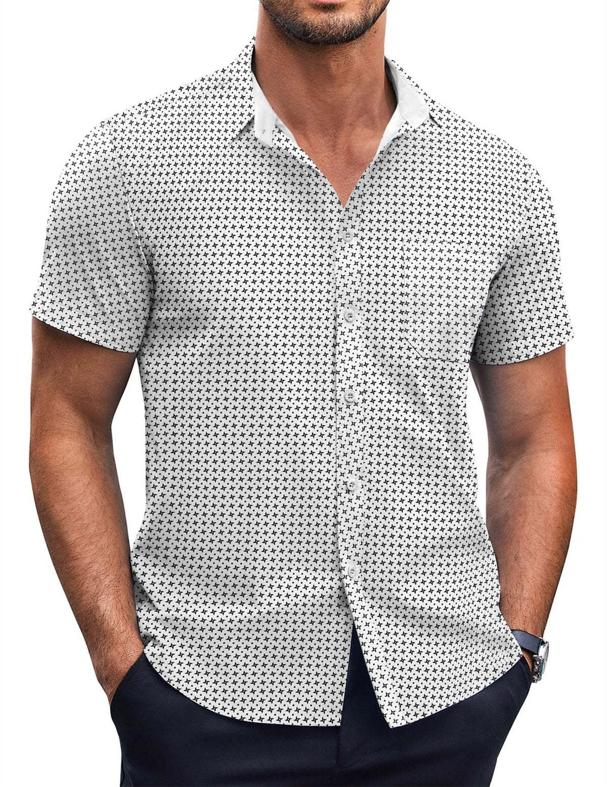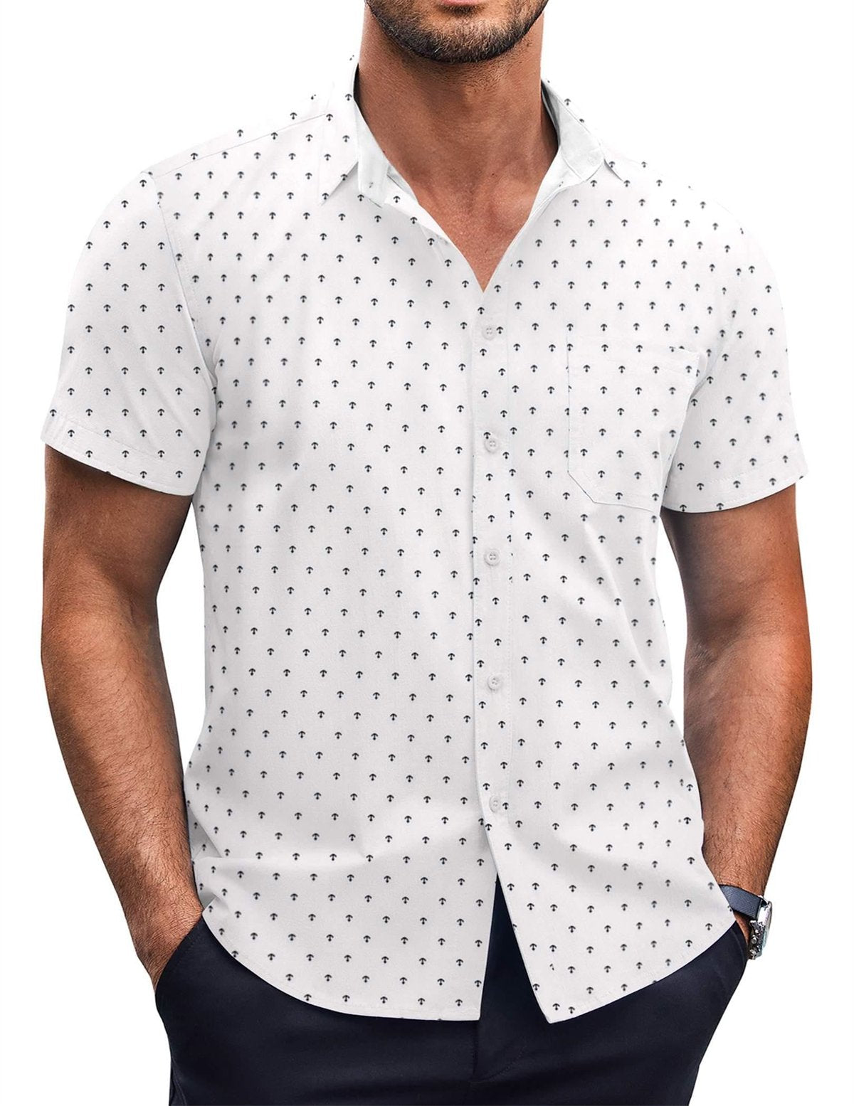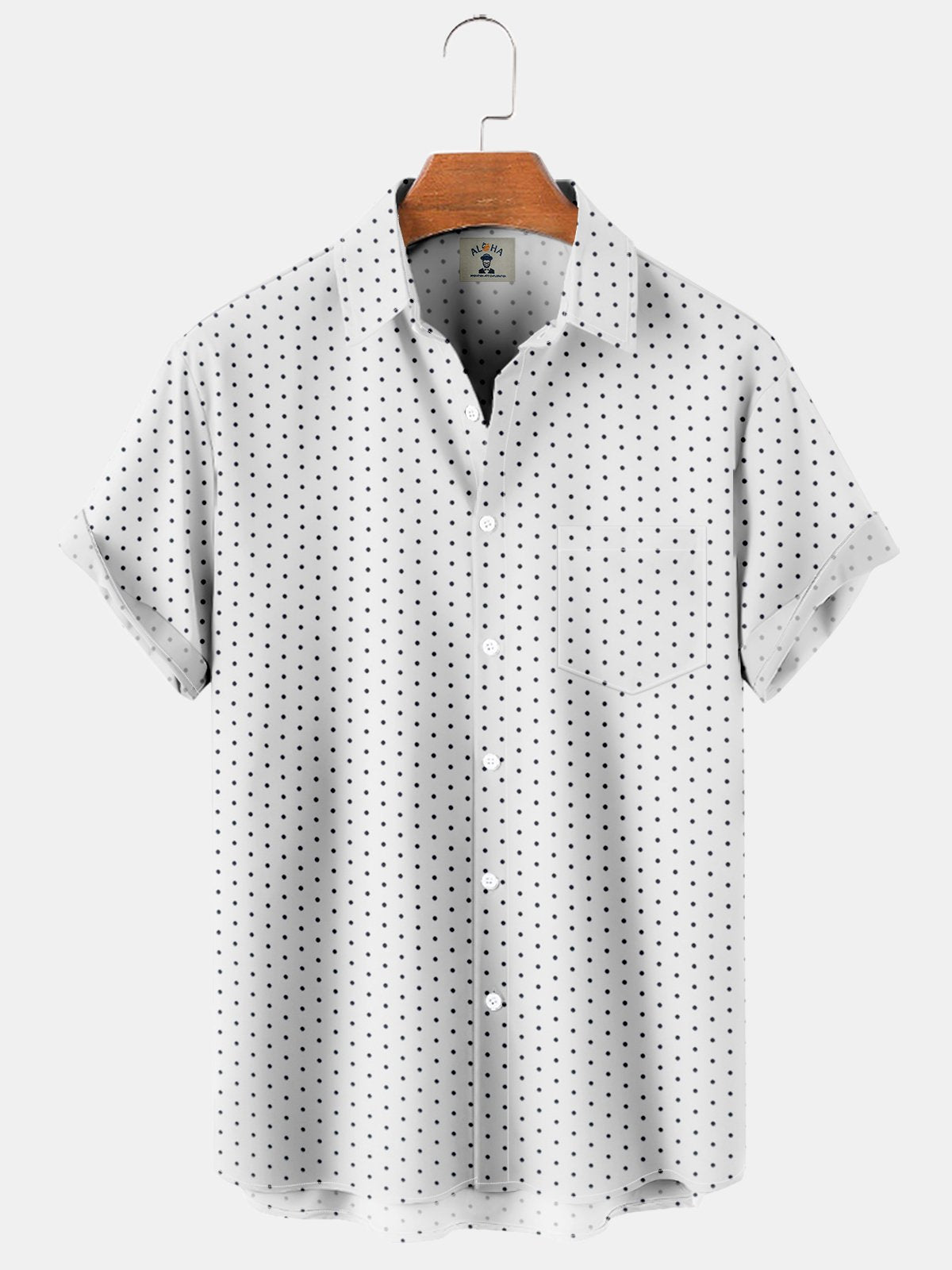 Men's Elegant Polka Dot Classic Print Wrinkle Resistant Short Sleeve Shirt