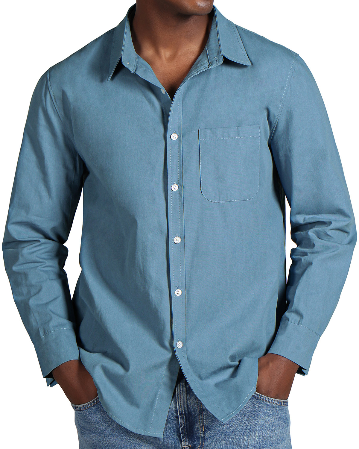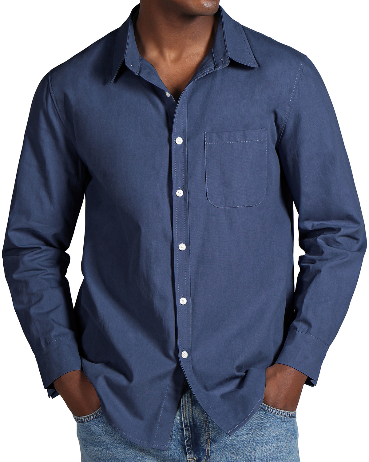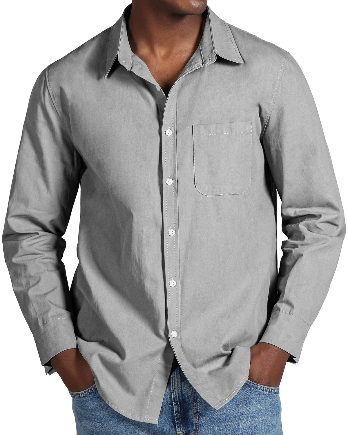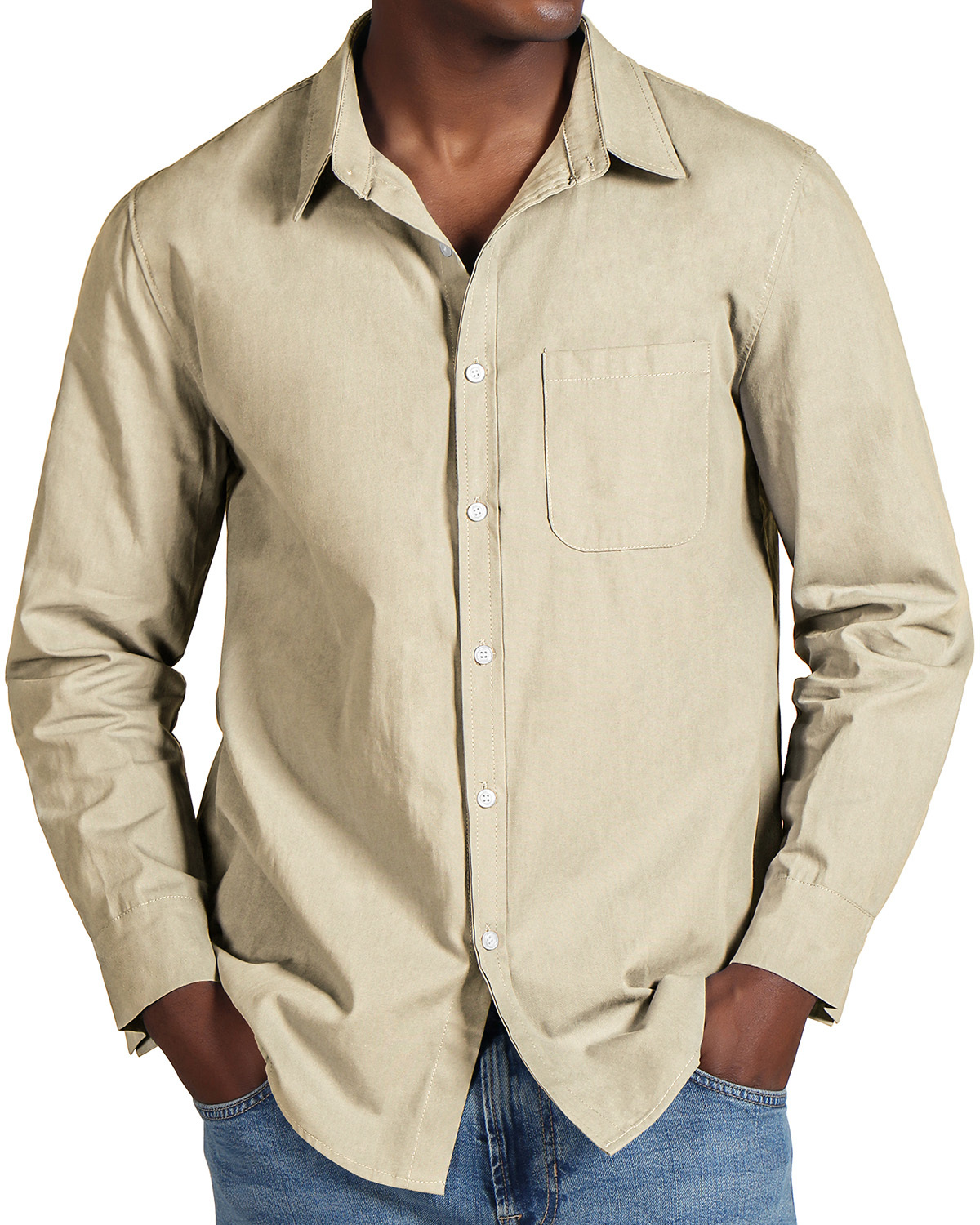 Men's Fashion Casual Cotton Pocket Long Sleeve Shirt
