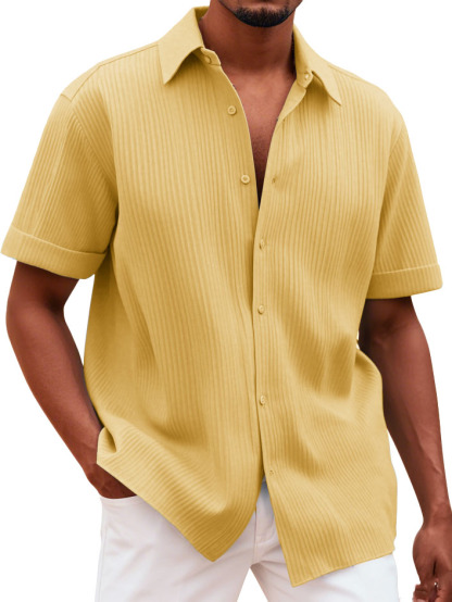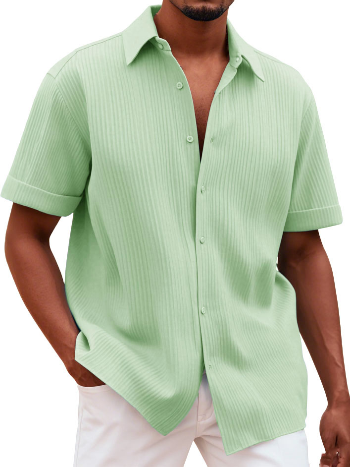 Men's Fashionable Casual Pitted Fabric Short-Sleeved Shirt