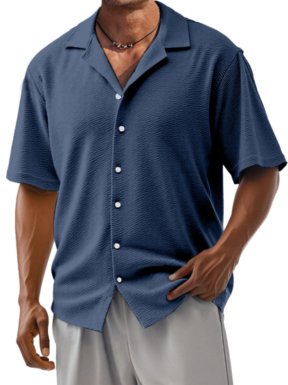 Men's Loose Solid Color Comfortable Texture Short-Sleeved Cuban Collar Shirt