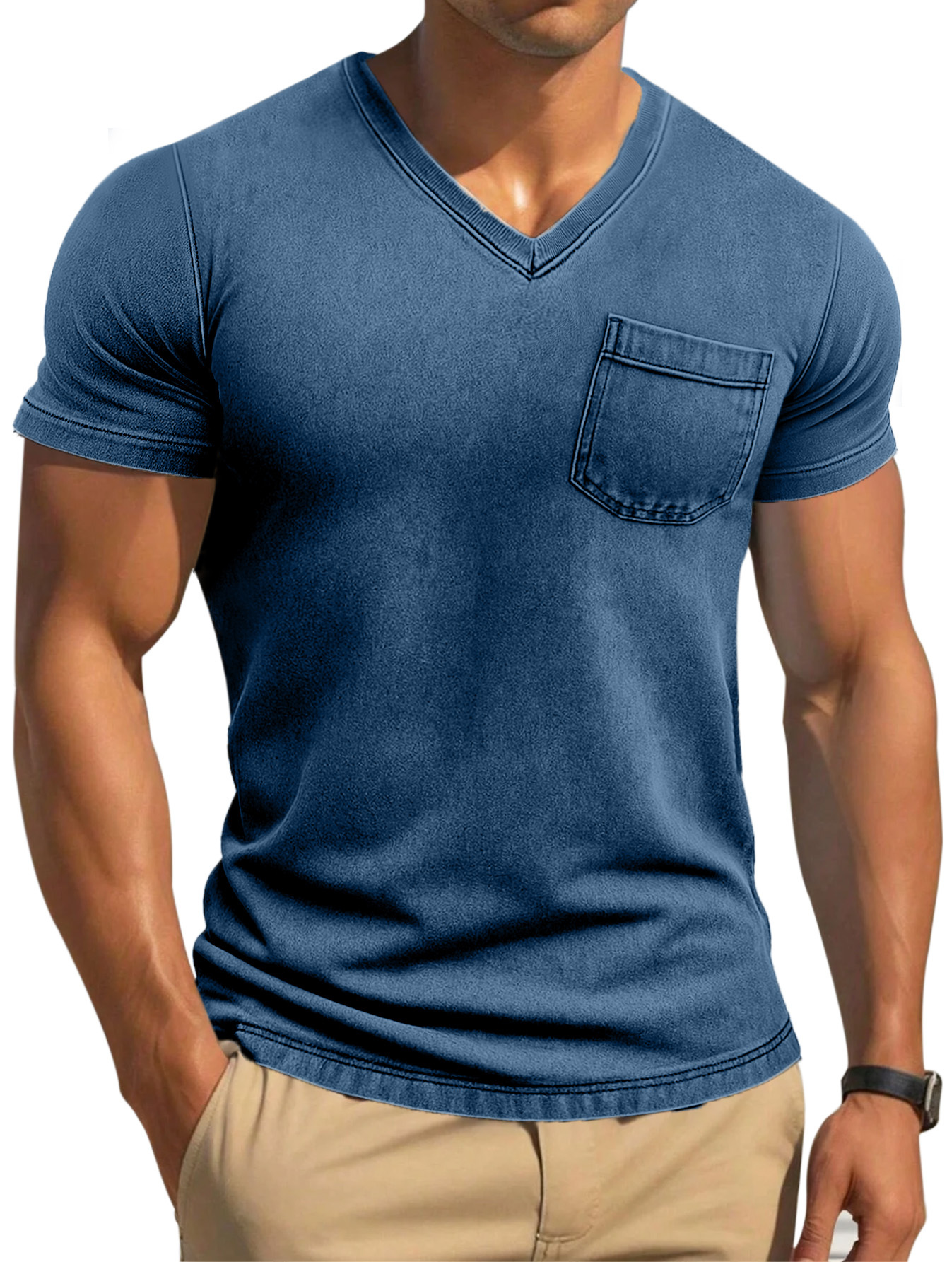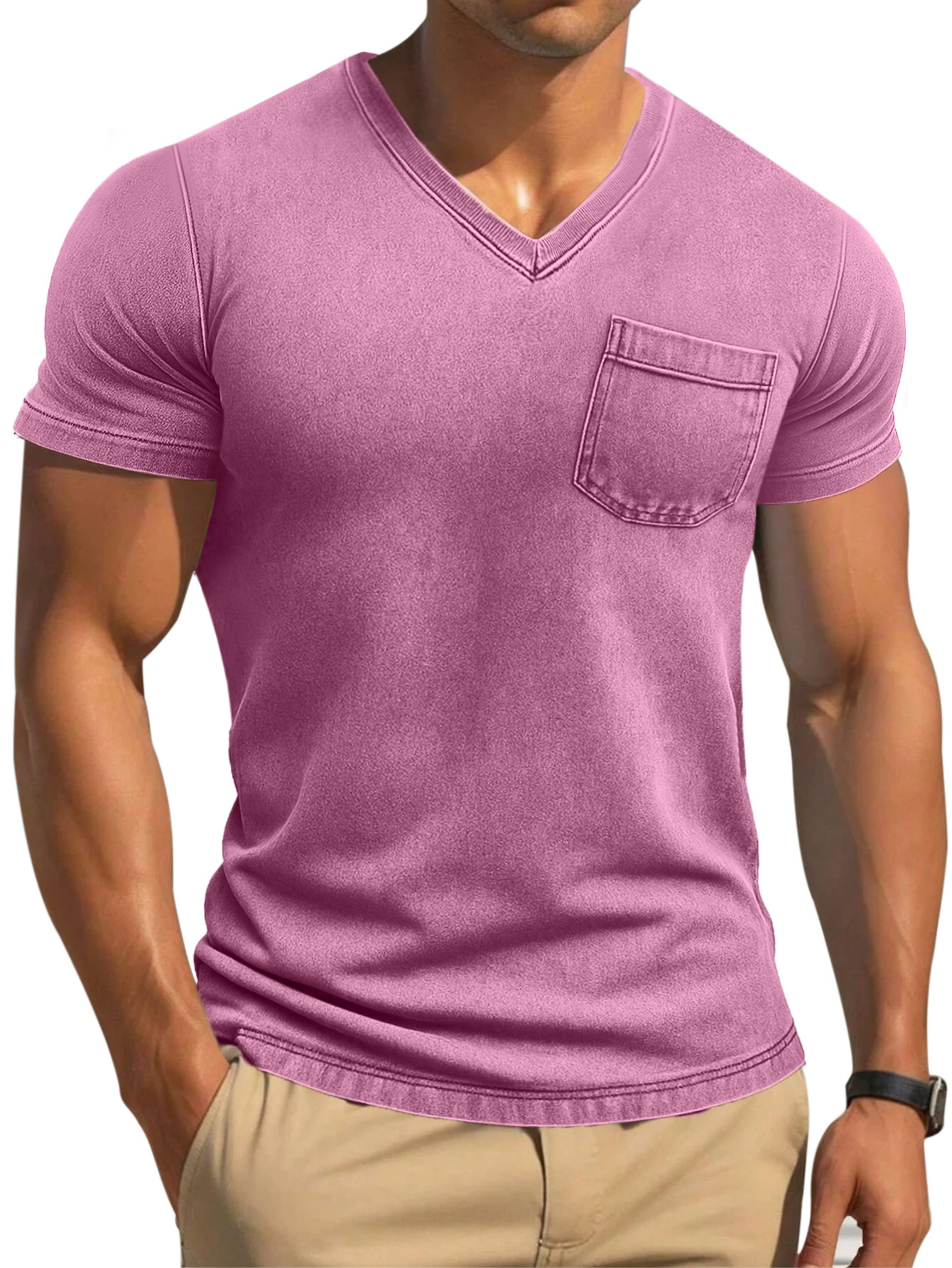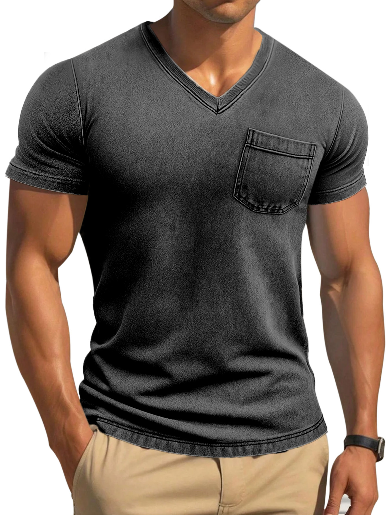 Men's Retro Solid Color Tight And Comfortable V-neck Short-sleeved T-shirt