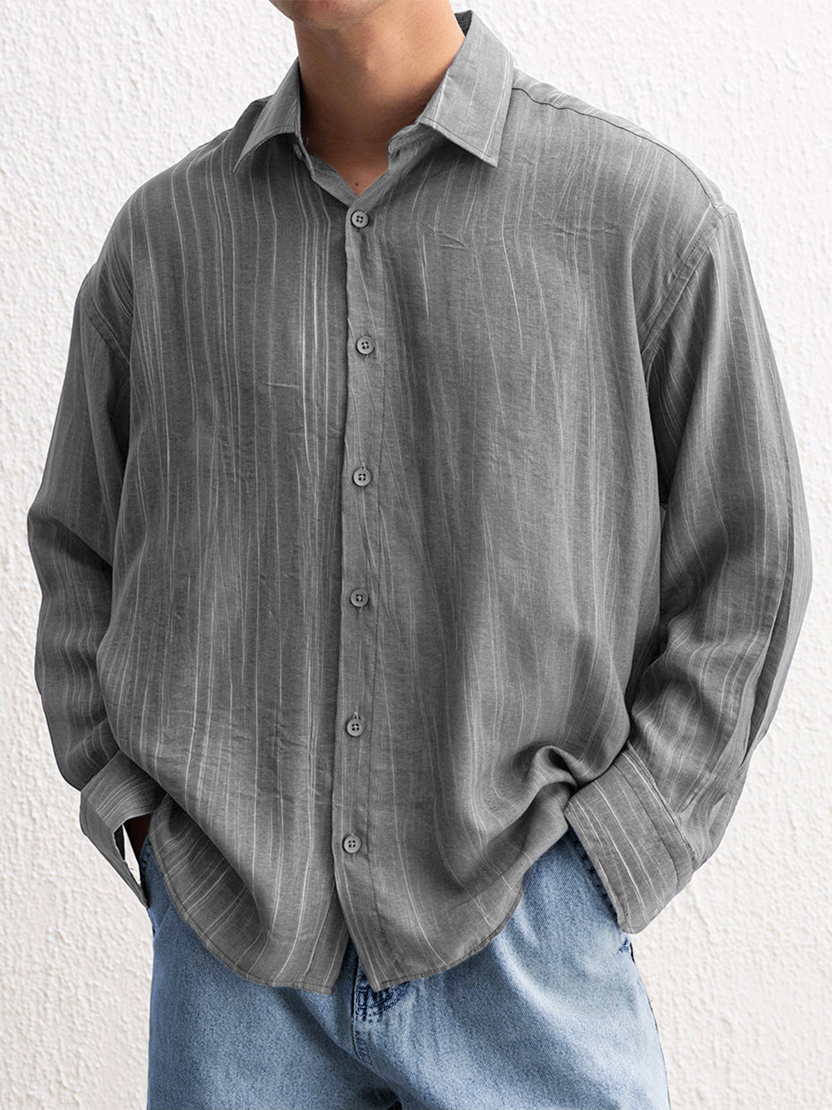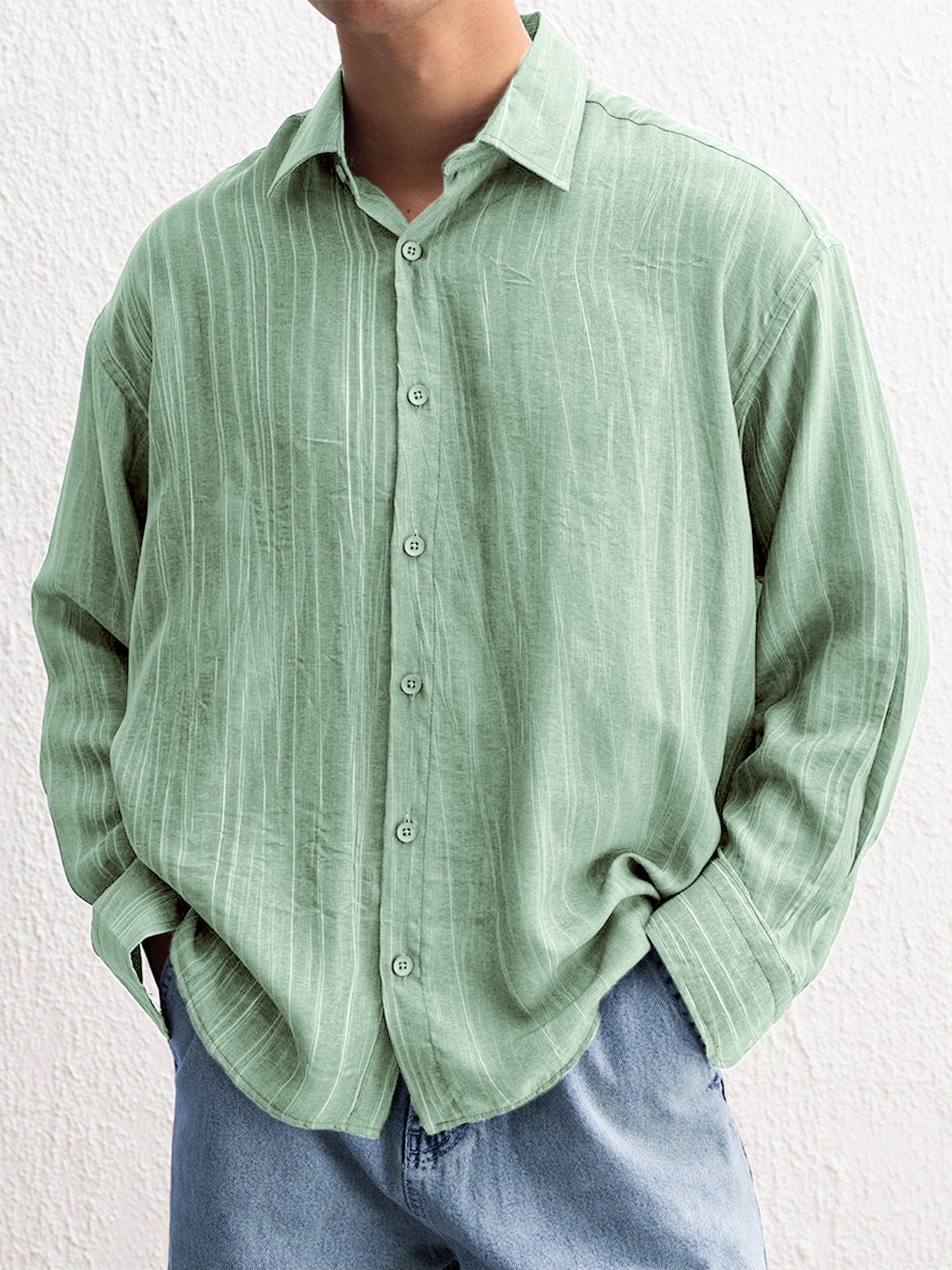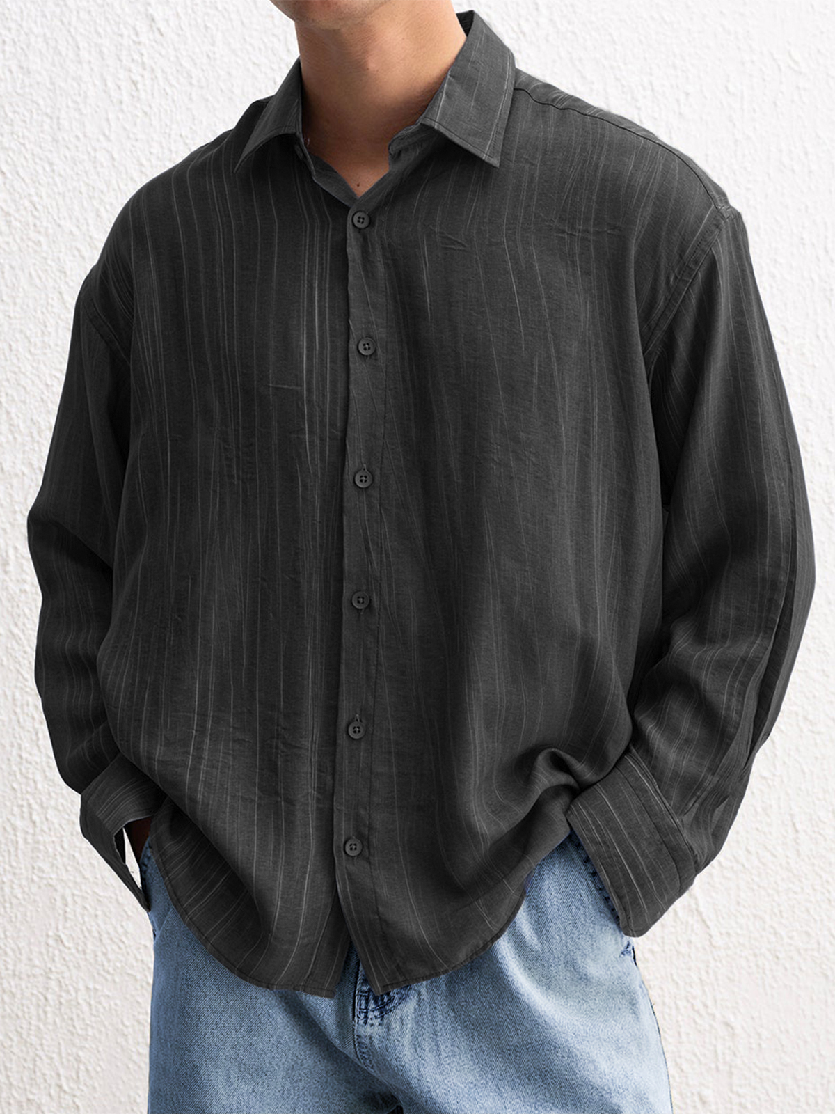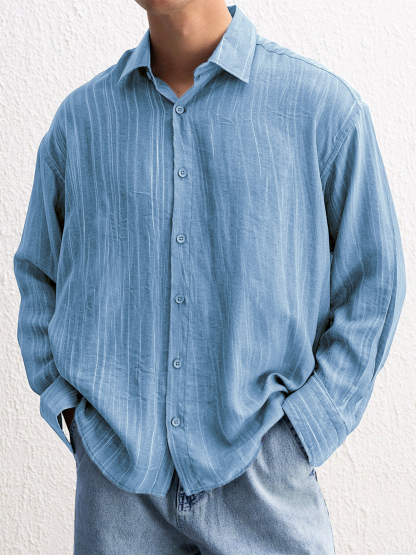 Men's Stylish Textured Casual Button-down Everyday Long Sleeve Shirt