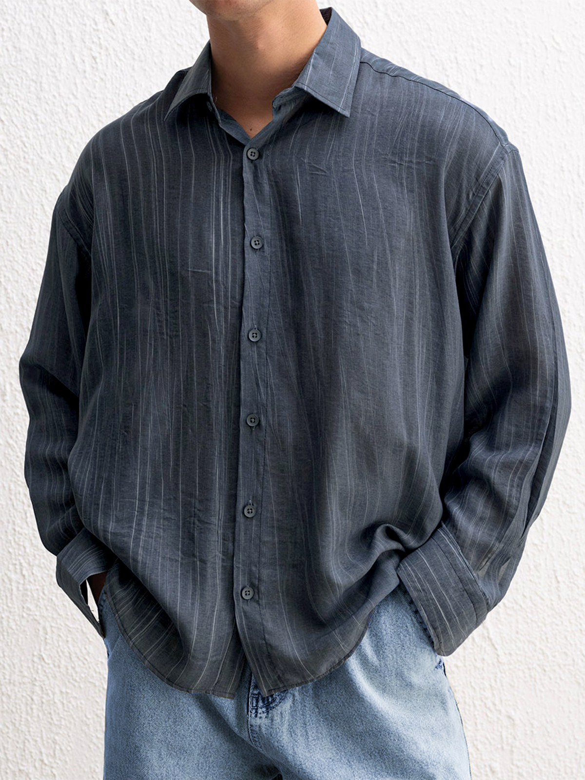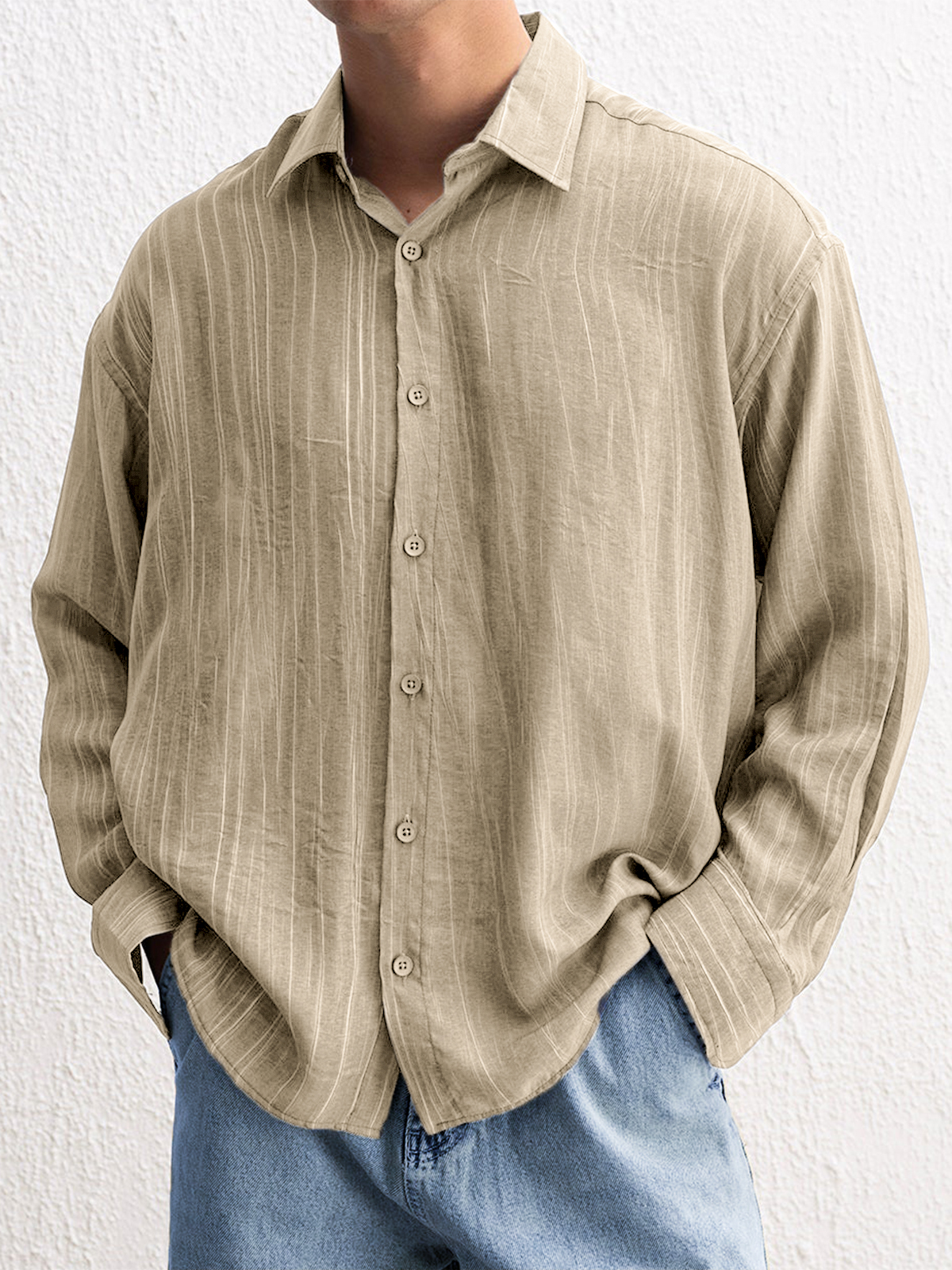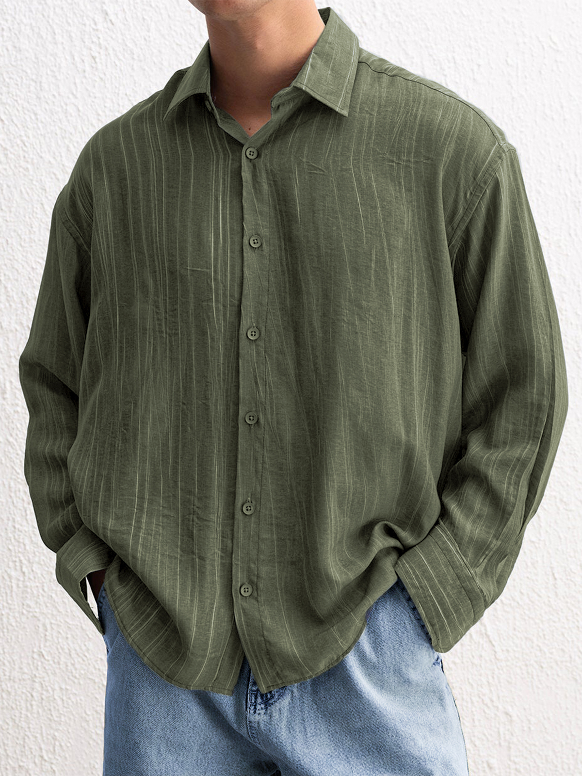 Men's Stylish Textured Casual Button-down Everyday Long Sleeve Shirt