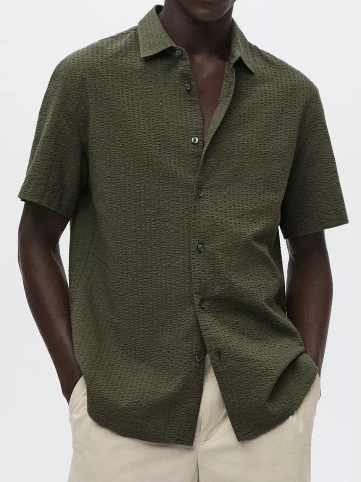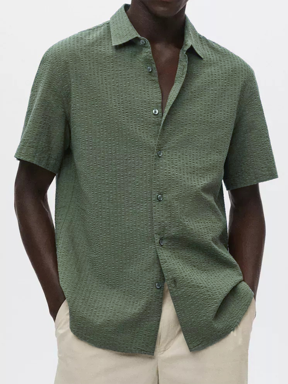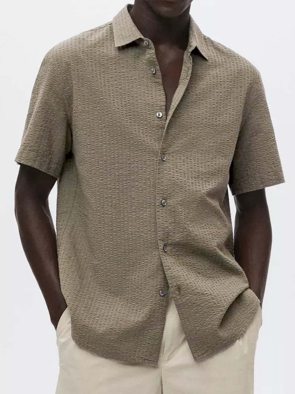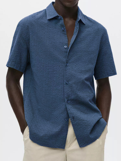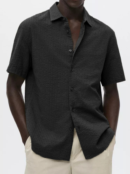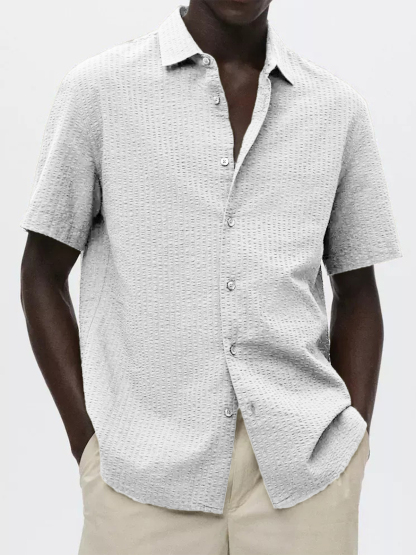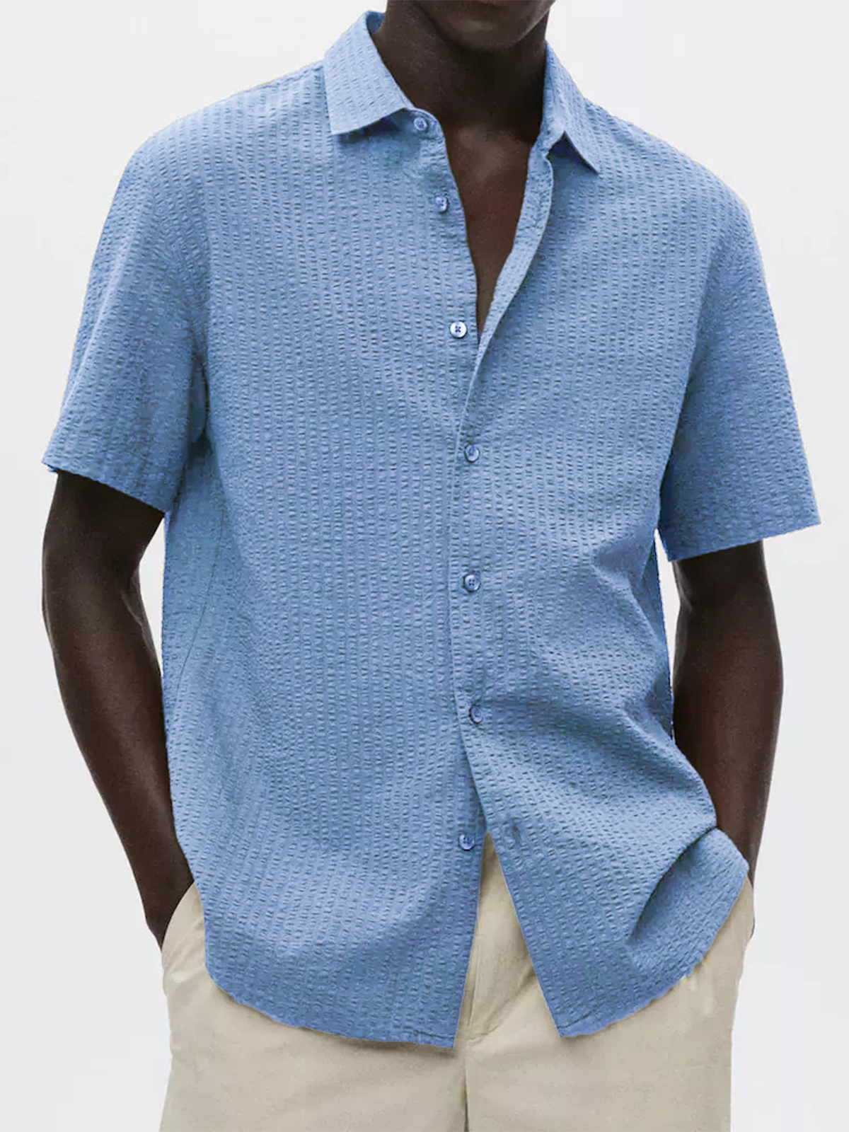 Men's Textured Seersucker Casual Vacation Lapel Short Sleeve Shirt