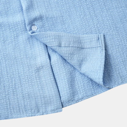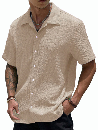 Stylish Men's Pleated Casual Lapel Short Sleeve Shirt