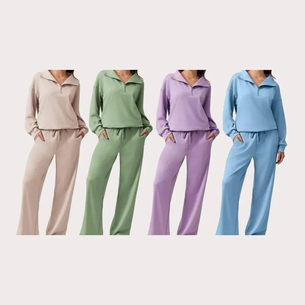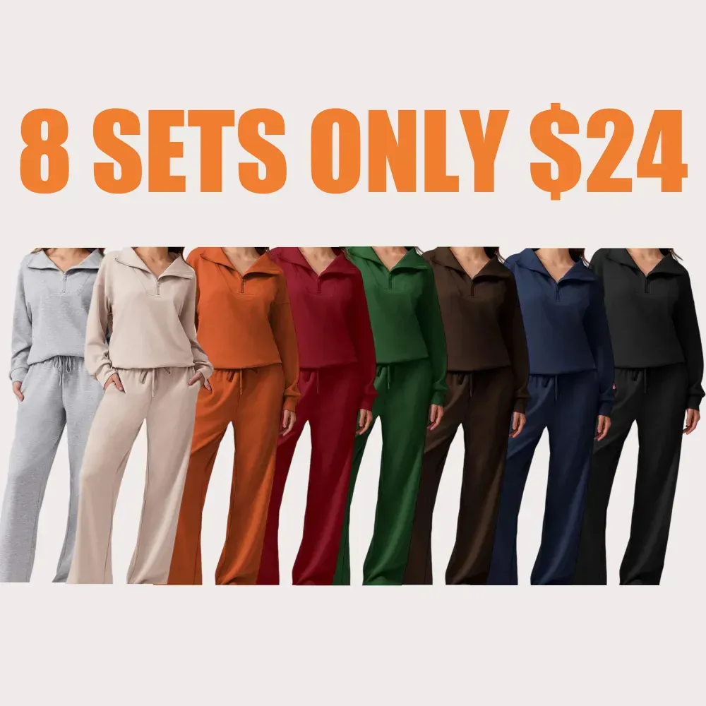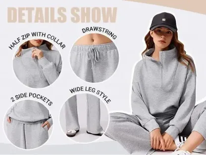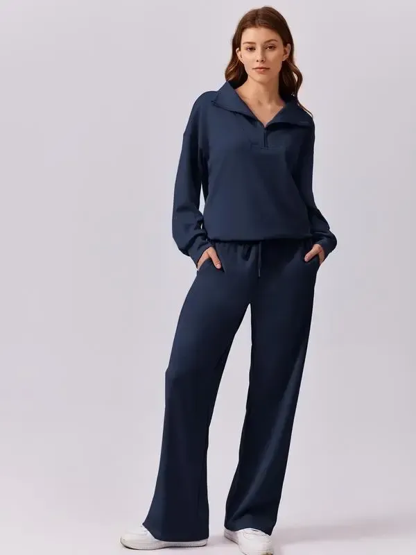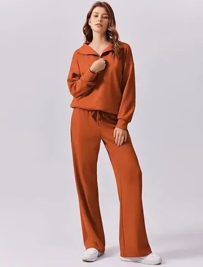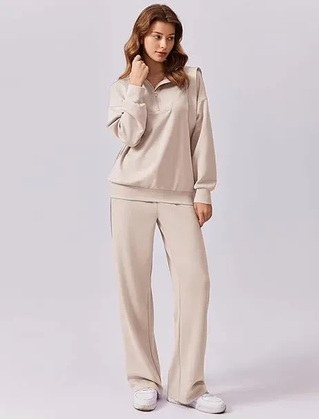Women's 2-Piece Sweatsuits Set Long Sleeve Half Zip Pullover Sweatshirt Joggers Pants