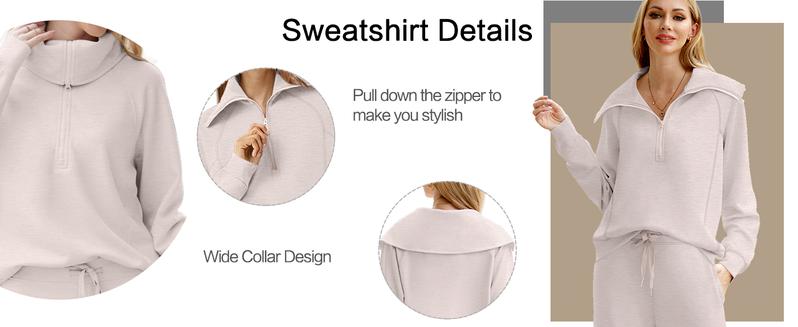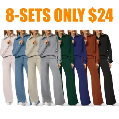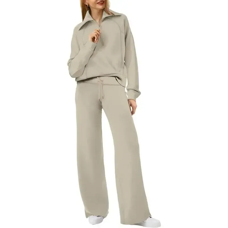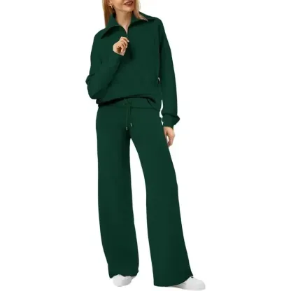 Women's Casual Set 2025 Collection Half-Zip Sweatshirt and Wide-Leg Pants