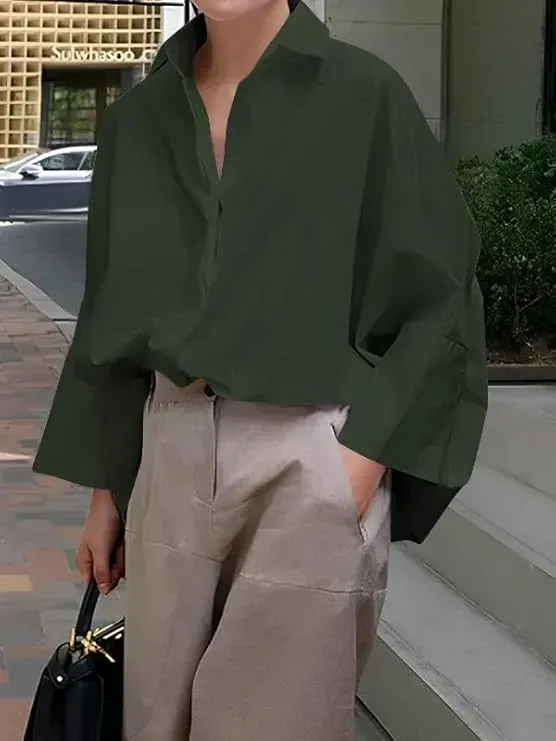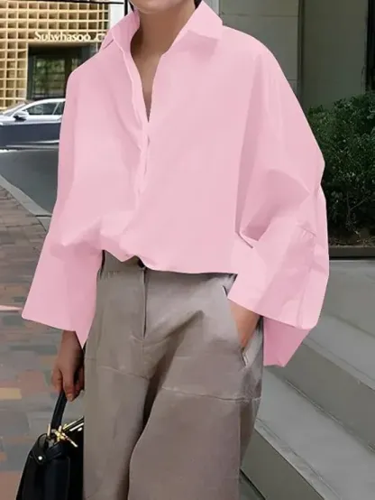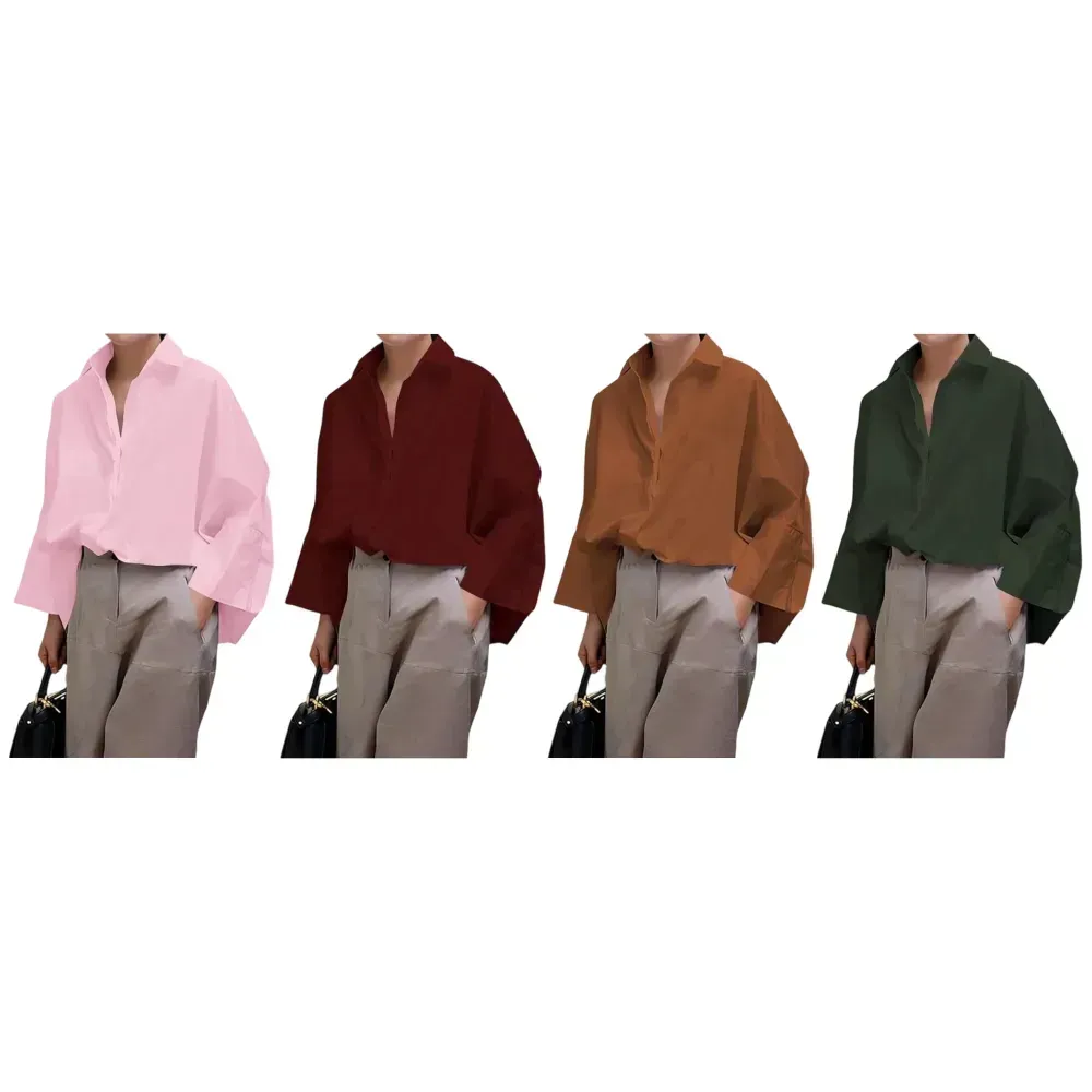 Womens Cotton Button Down Shirt Casual 3/4 Sleeve Loose Fit