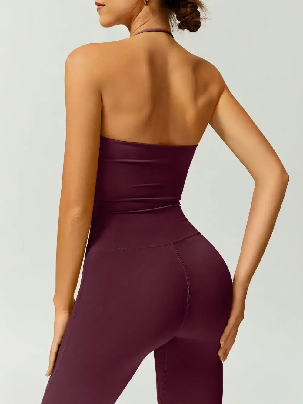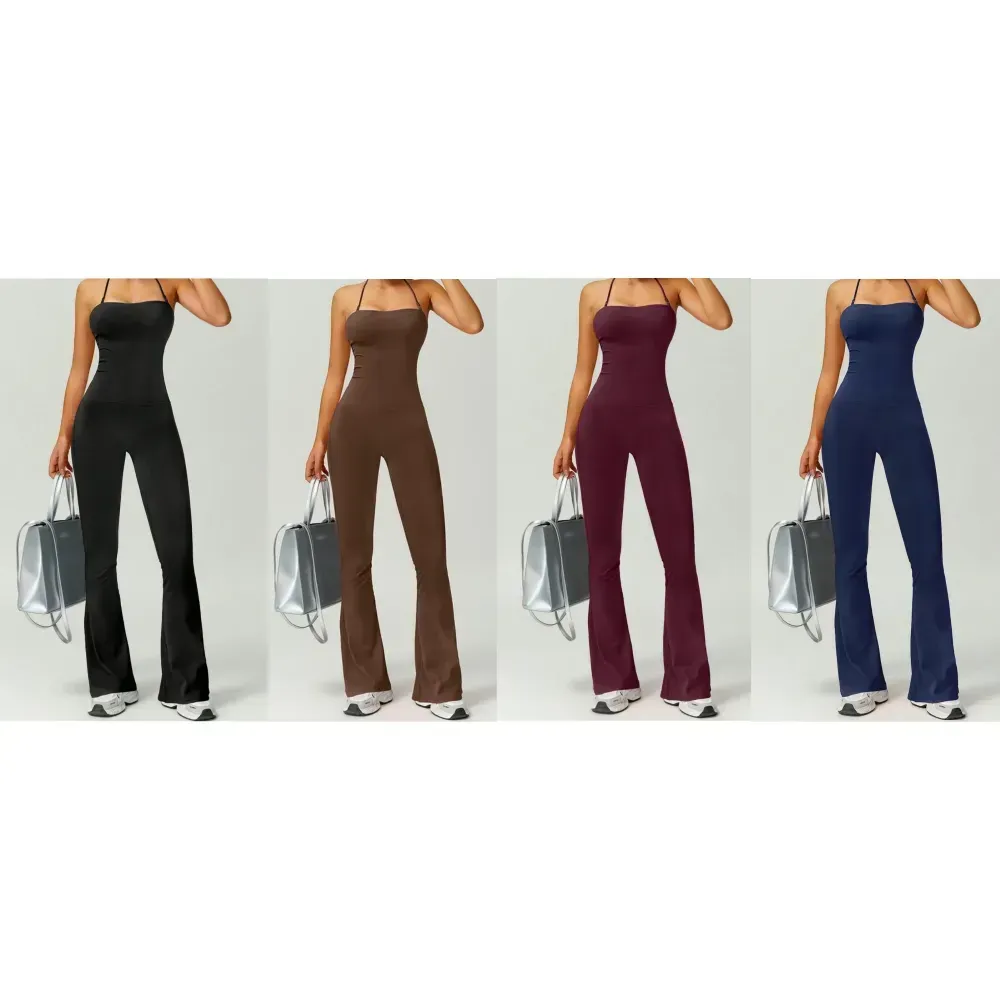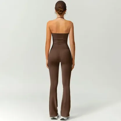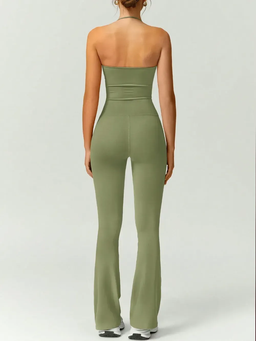 Women's Halter Neck Bodycon Flared Leg Jumpsuit
