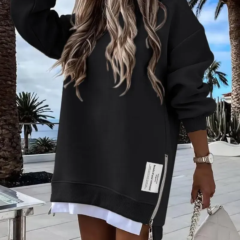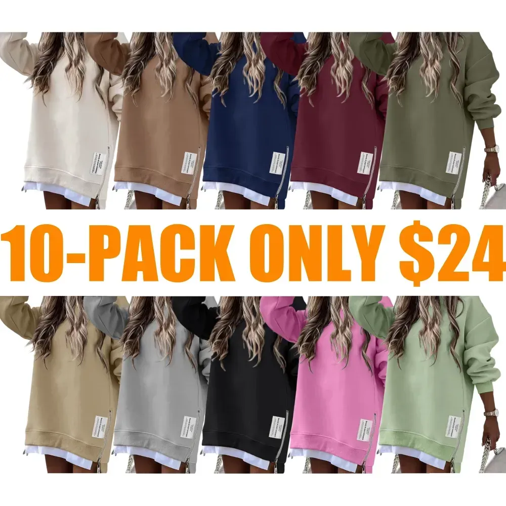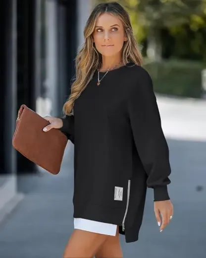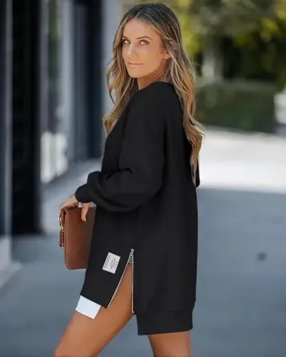 Design: The Round neck sweatshirt, the zipper works smoothly, solid color, round neck,the zipper side slit design also looks great layered under jackets, coats, vests and cami shirts.