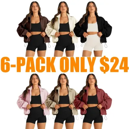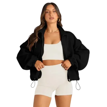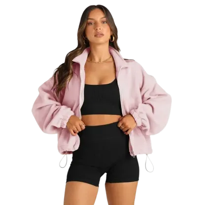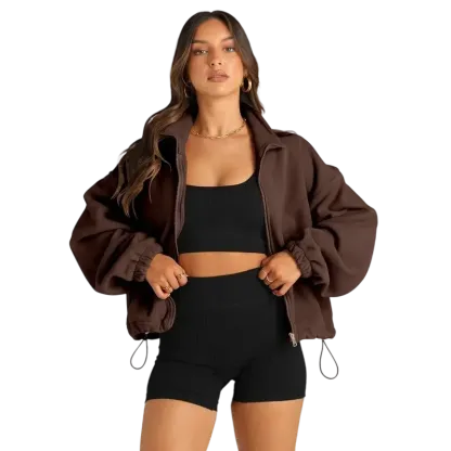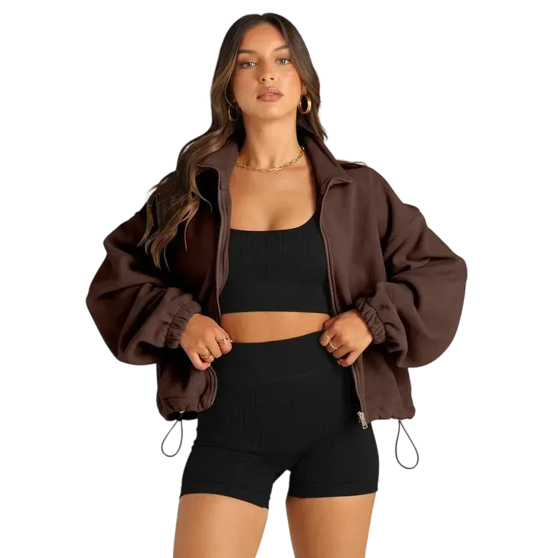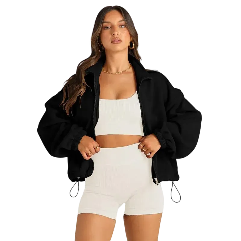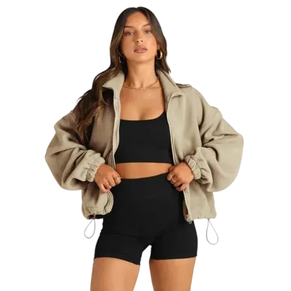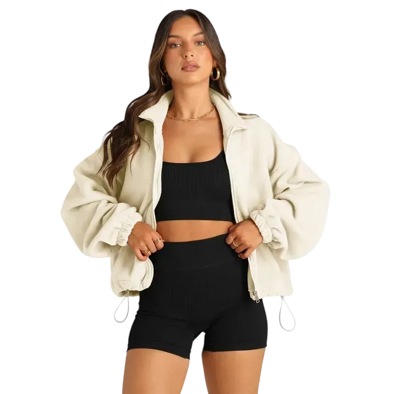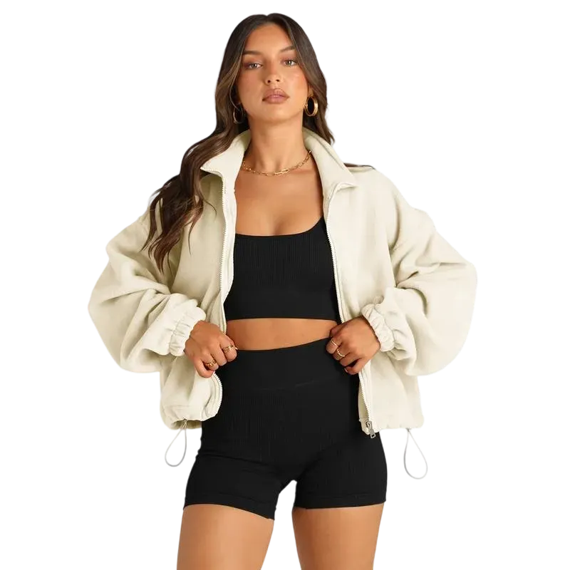 Women's Winter Stand Collar Sherpa Crop Coat fits nicely over a yoga