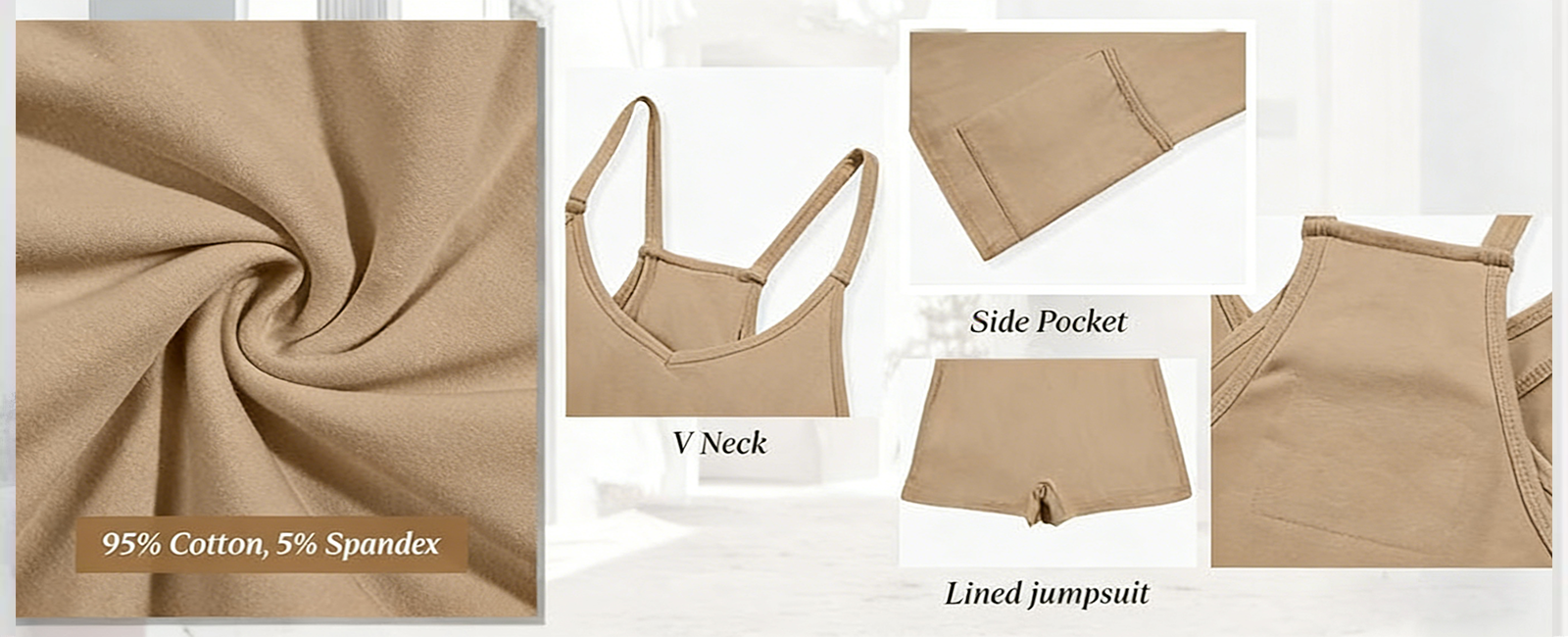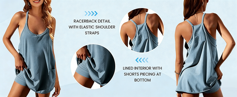 Design: Designed with a V-neckline and adjustable spaghetti straps, it's complemented by a racerback, front patch pockets and a key built-in shorts lining